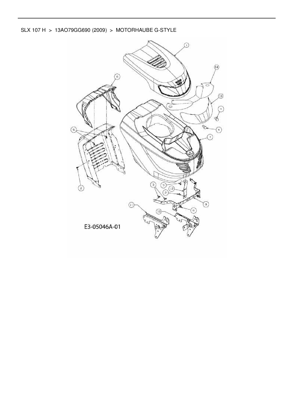 Ersatzteile für Rasentraktor Gutbrod SLX 107 H aus der Zeichnung Motorhaube G-Style: