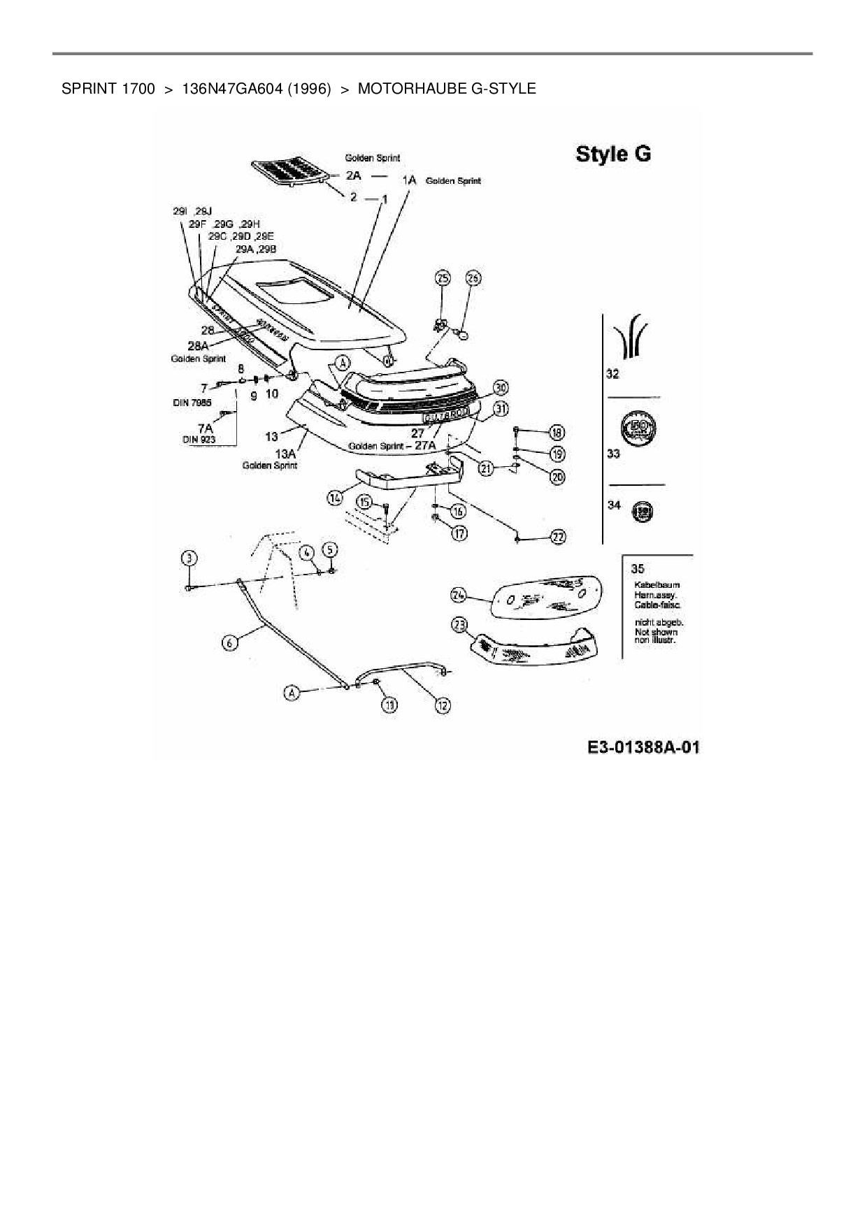 Ersatzteile für Rasentraktor Gutbrod Sprint 1700 aus der Zeichnung Motorhaube G-Style: