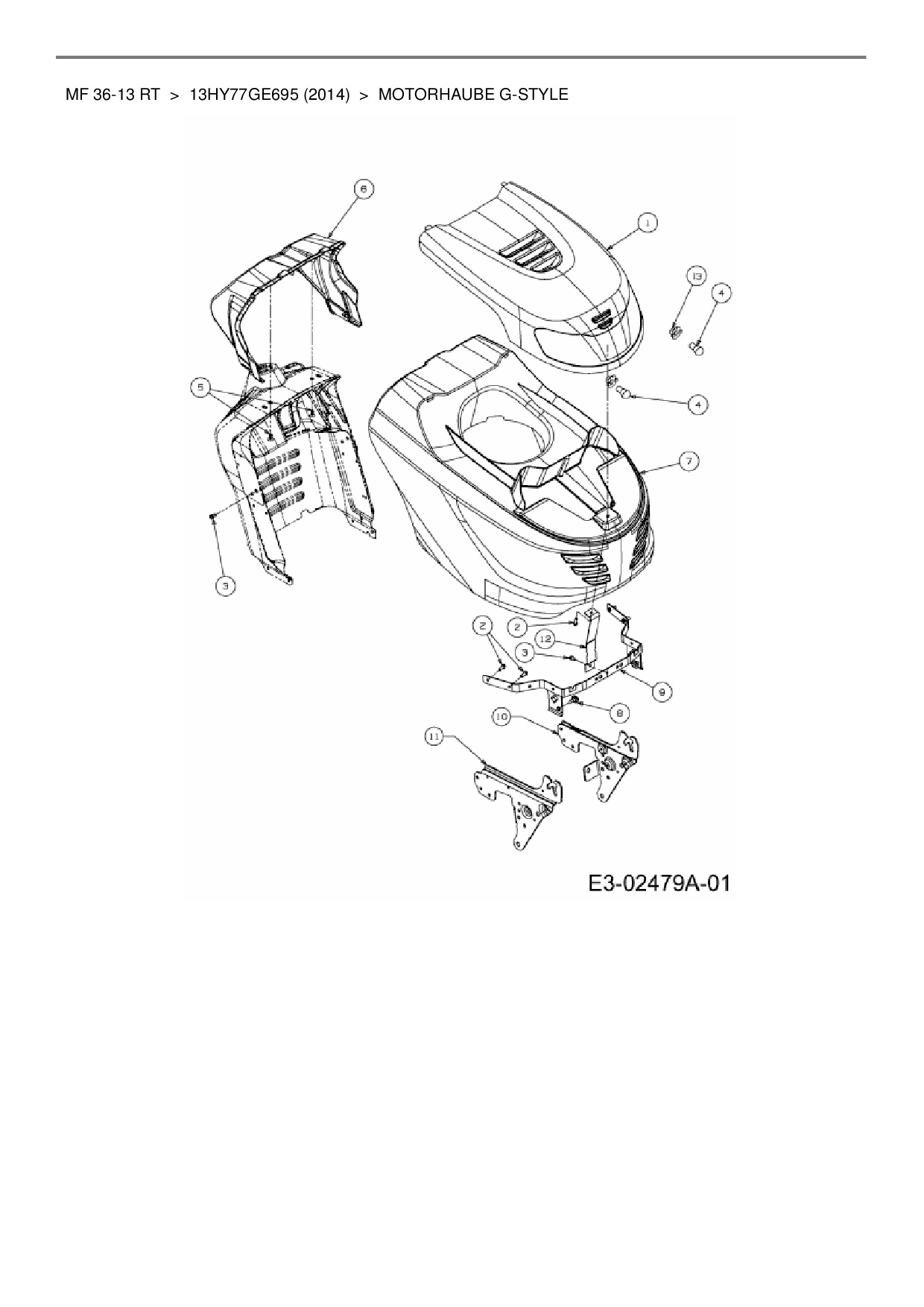 Download Ersatzteil-Zeichnung Massey Ferguson MF 36-13 RT Zeichnung Motorhaube G-Style (PDF-Format)