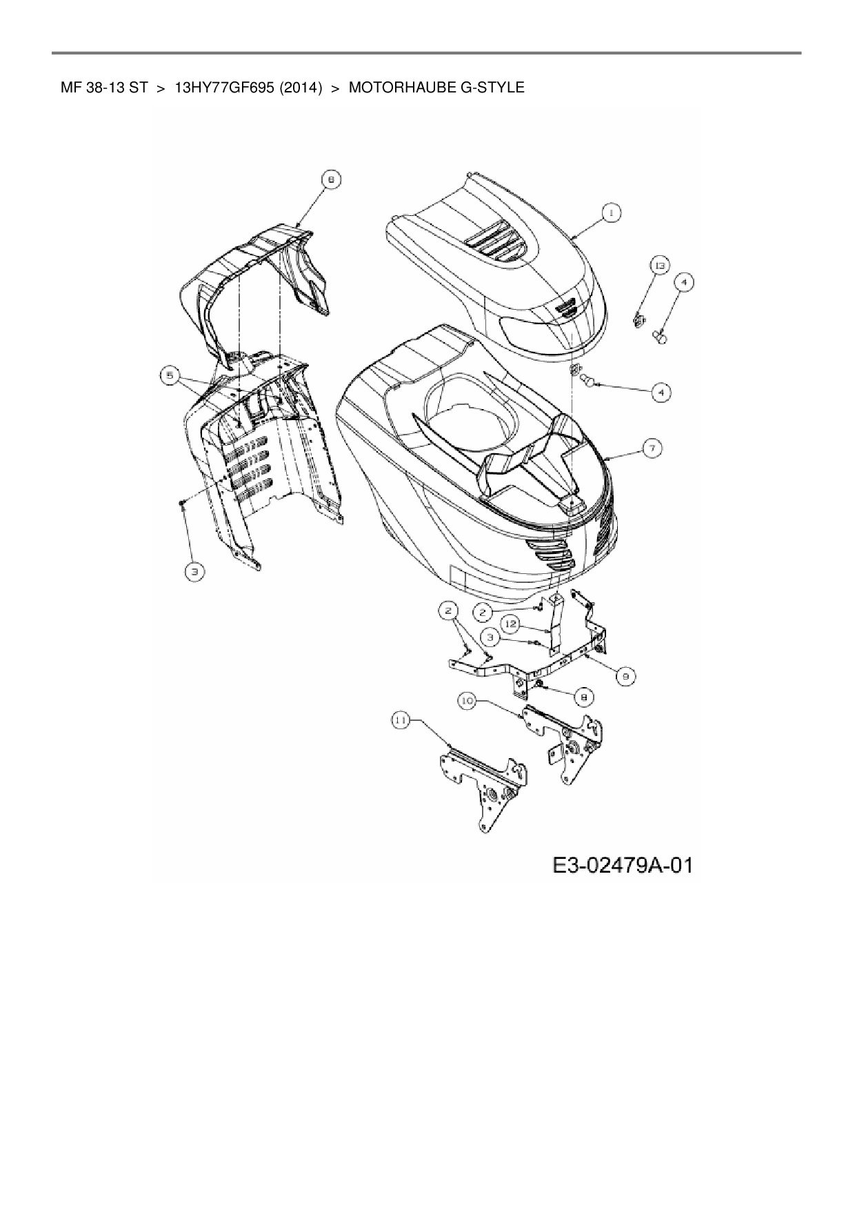 Ersatzteile für Rasentraktor Massey Ferguson MF 38-13 ST aus der Zeichnung Motorhaube G-Style: