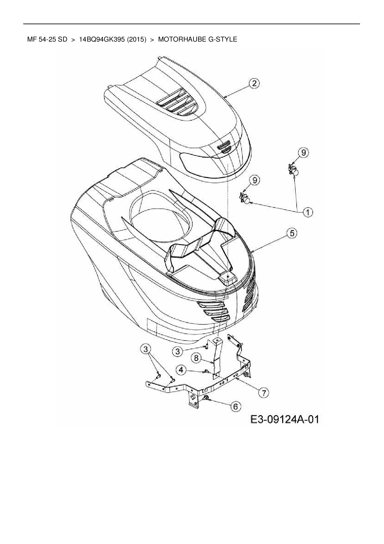 Ersatzteile für Gartentraktor Massey Ferguson MF 54-25 SD aus der Zeichnung Motorhaube G-Style: