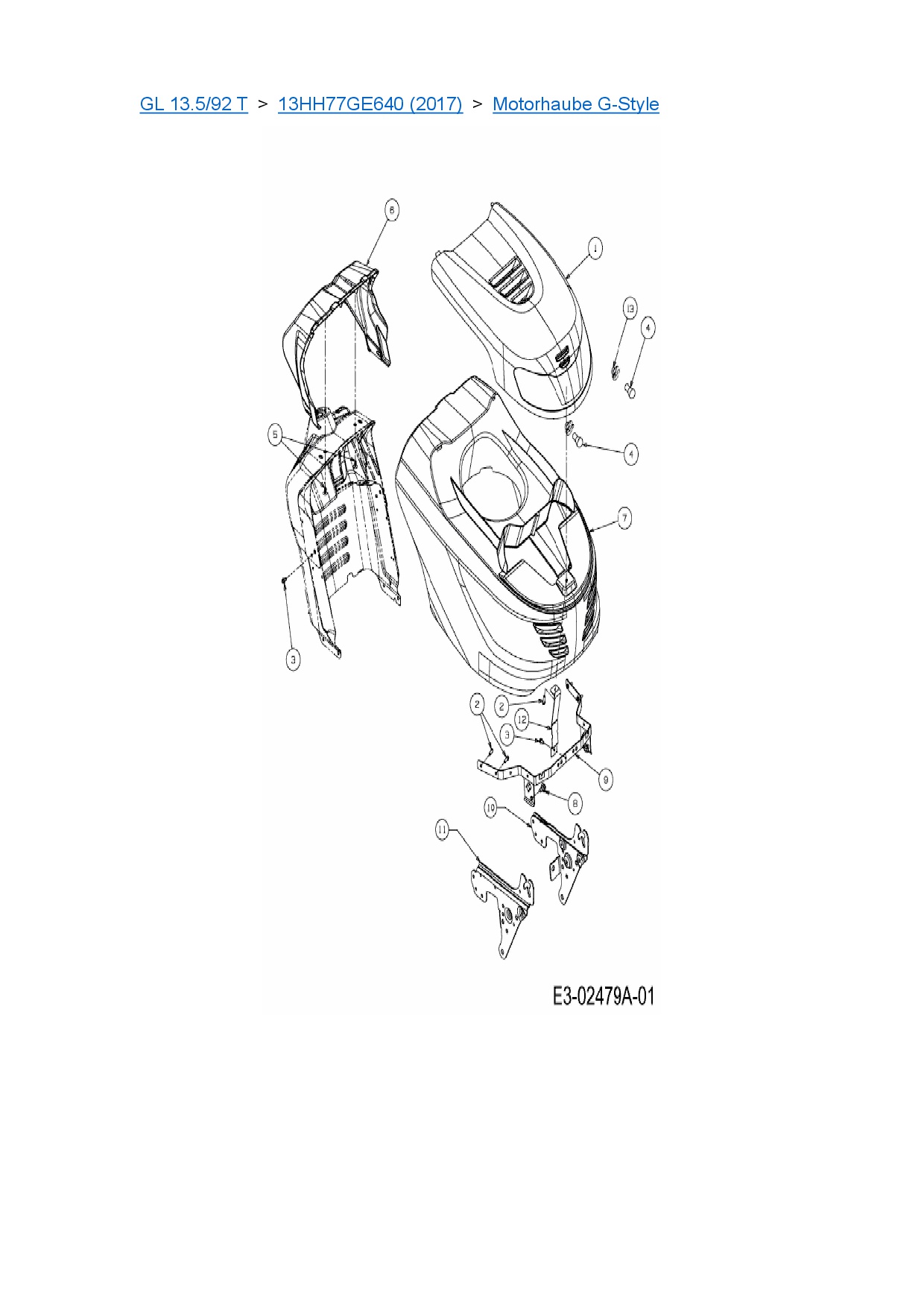 Download Ersatzteil-Zeichnung Gartenland GL 13.5/92 T Zeichnung Motorhaube G-Style (PDF-Format)