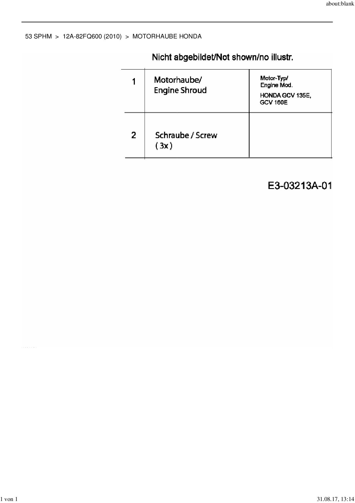 Ersatzteile für Motormäher mit Antrieb MTD 53 SPHM aus der Zeichnung Motorhaube Honda: