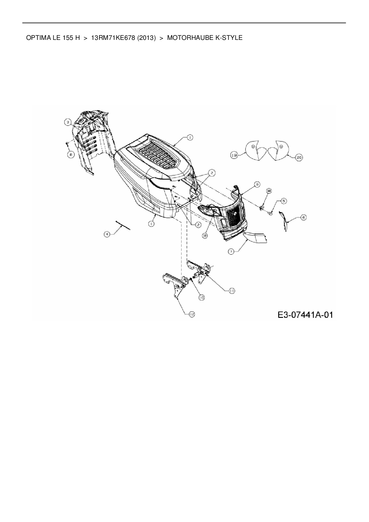 Ersatzteile für Rasentraktor MTD Optima LE 155 H aus der Zeichnung Motorhaube K-Style: