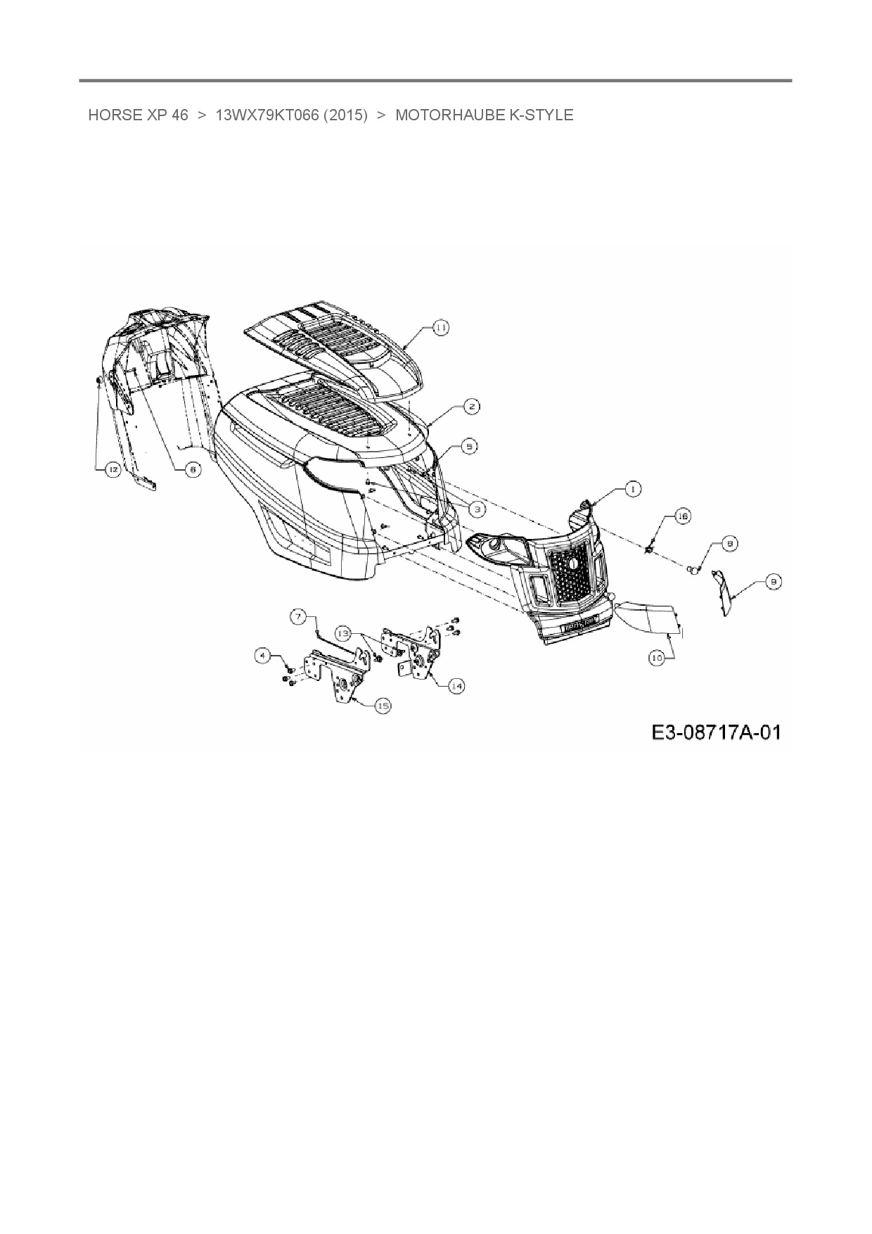 Ersatzteile für Rasentraktor Troy-Bilt Horse XP 46 aus der Zeichnung Motorhaube K-Style:
