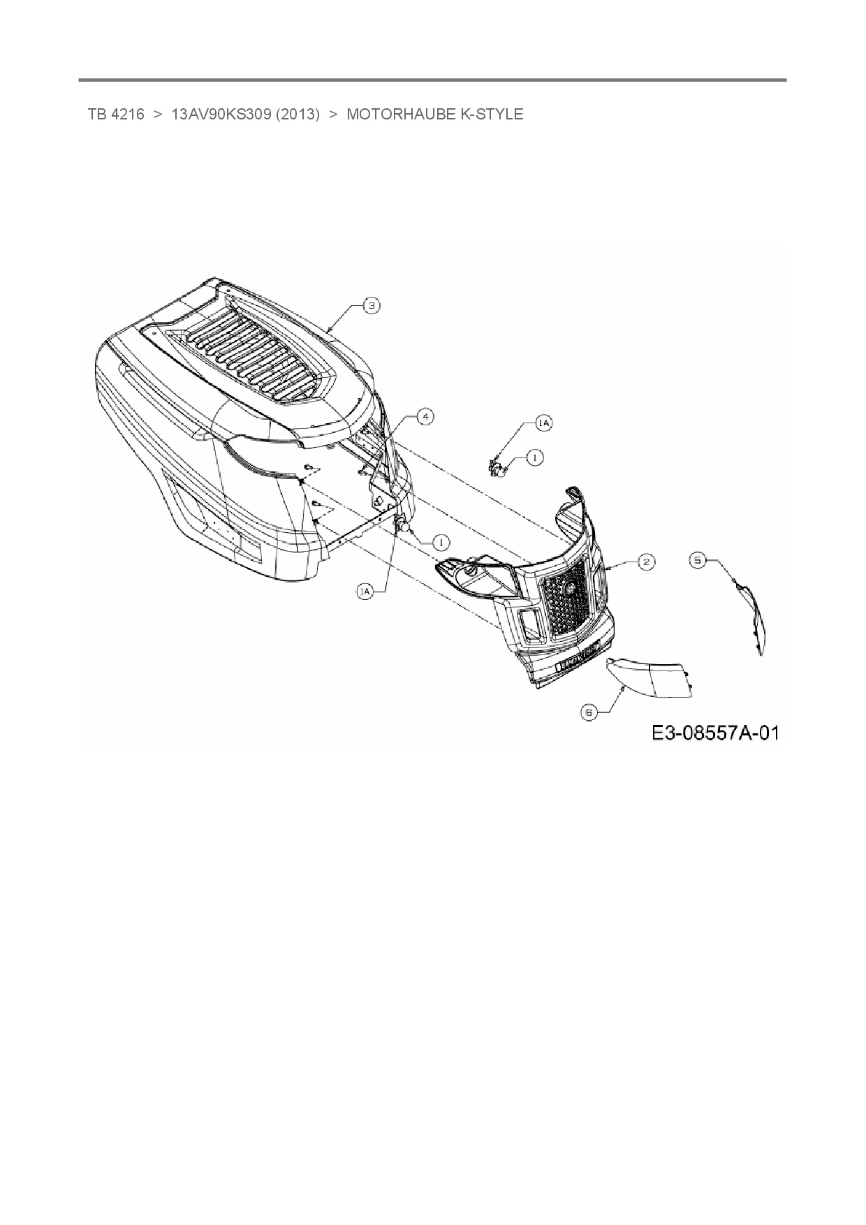 Download Ersatzteil-Zeichnung Troy-Bilt TB 4216 Zeichnung Motorhaube K-Style (PDF-Format)