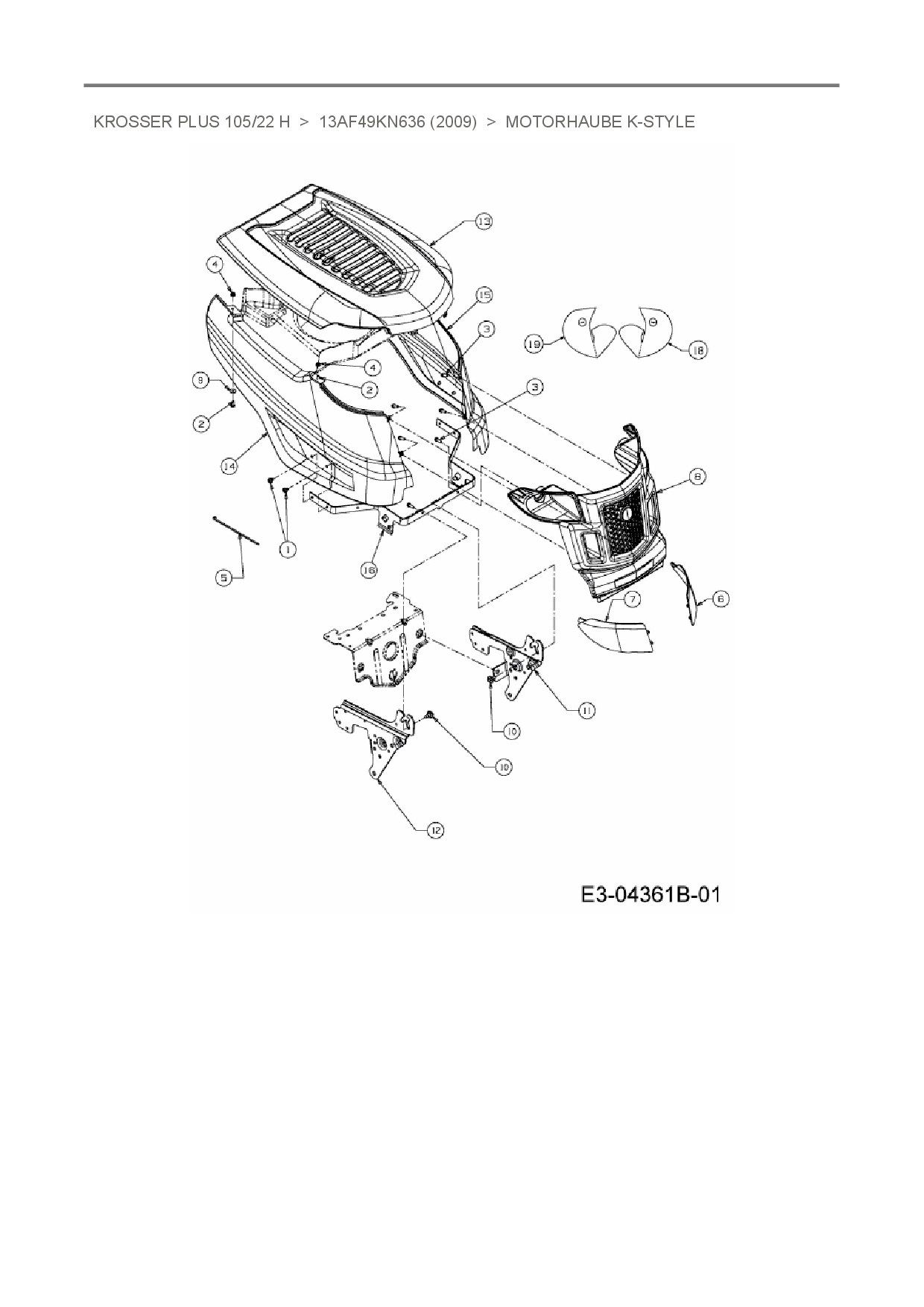 Ersatzteile für Rasentraktor Oleo-Mac Krosser Plus 105/22 H aus der Zeichnung Motorhaube K-Style: