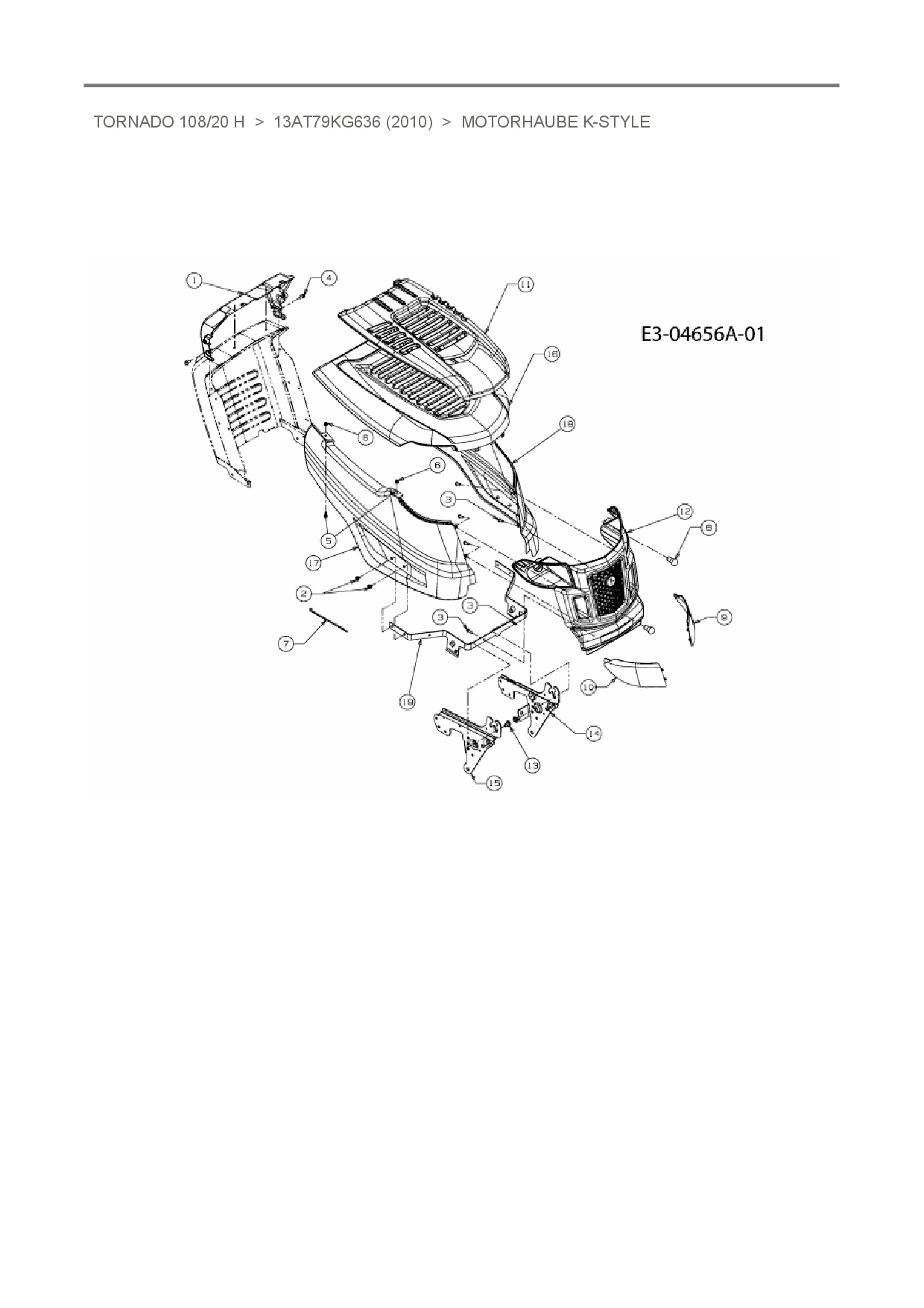 Ersatzteile für Rasentraktor Oleo-Mac Tornado 108/20 H aus der Zeichnung Motorhaube K-Style: