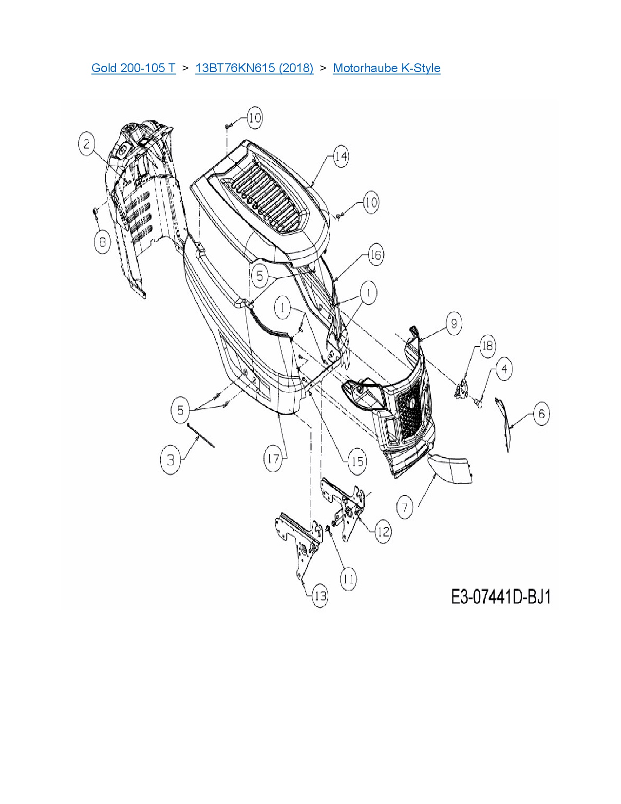 Ersatzteile für Rasentraktor MTD Gold 200-105 T aus der Zeichnung Motorhaube K-Style: