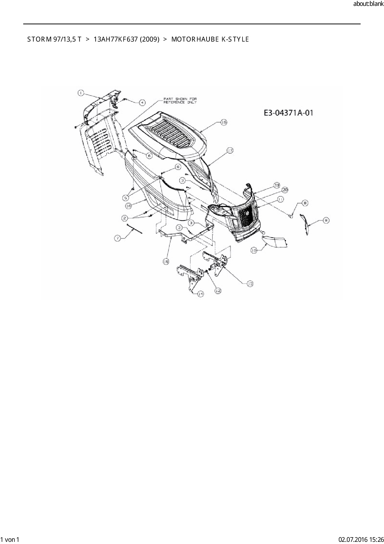 Ersatzteile für Rasentraktor EFCO Storm 97/13,5 T aus der Zeichnung Motorhaube K-Style: