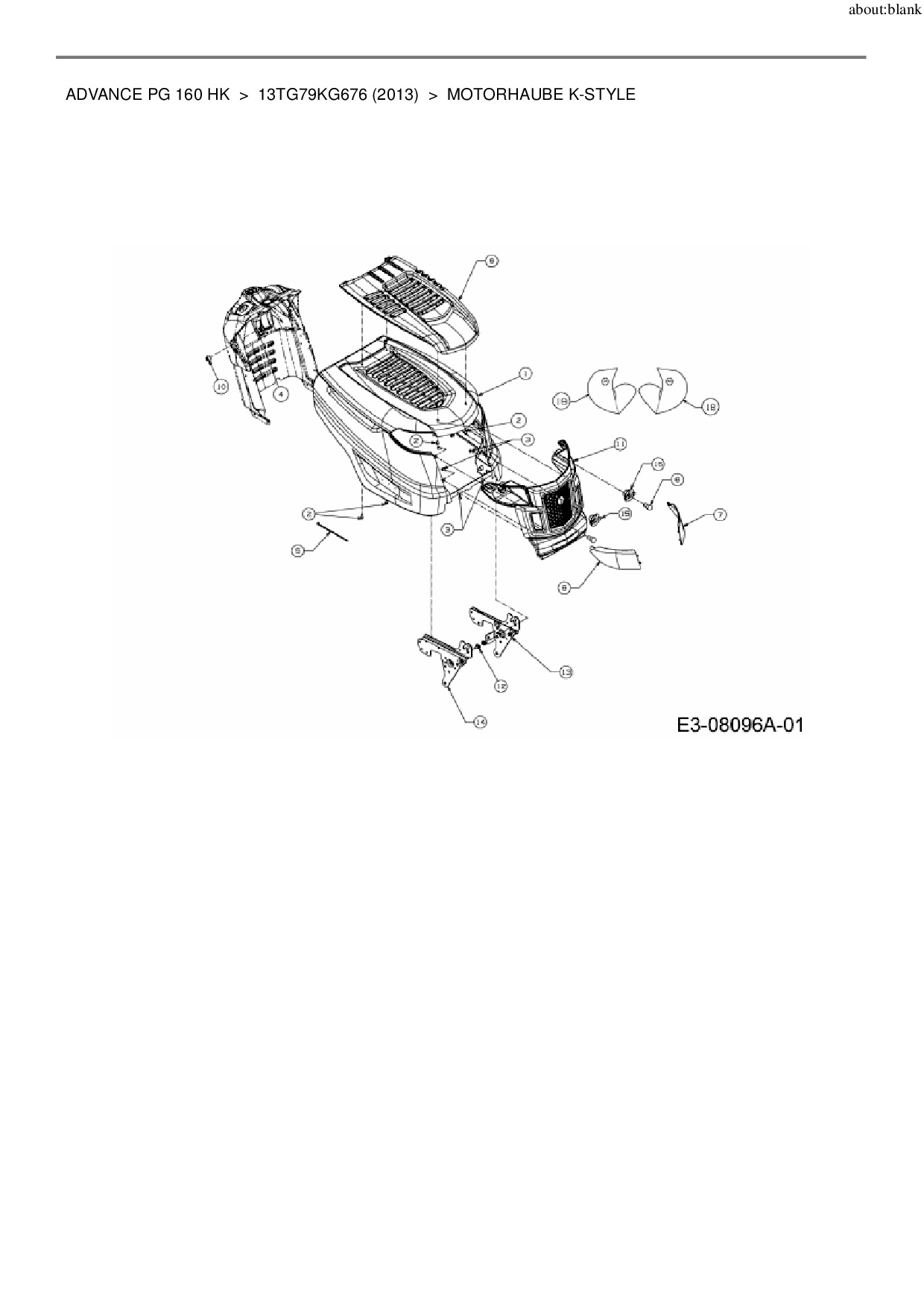 Ersatzteile für Rasentraktor MTD Advance PG 160 HK aus der Zeichnung Motorhaube K-Style: