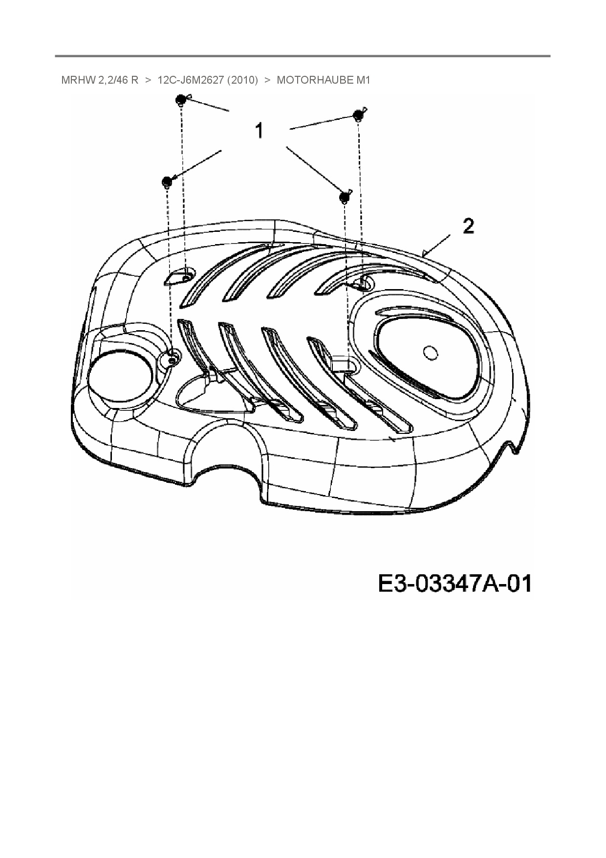 Ersatzteile für Motormäher mit Antrieb Max Bahr MRHW 2,2/46 R aus der Zeichnung Motorhaube M1: