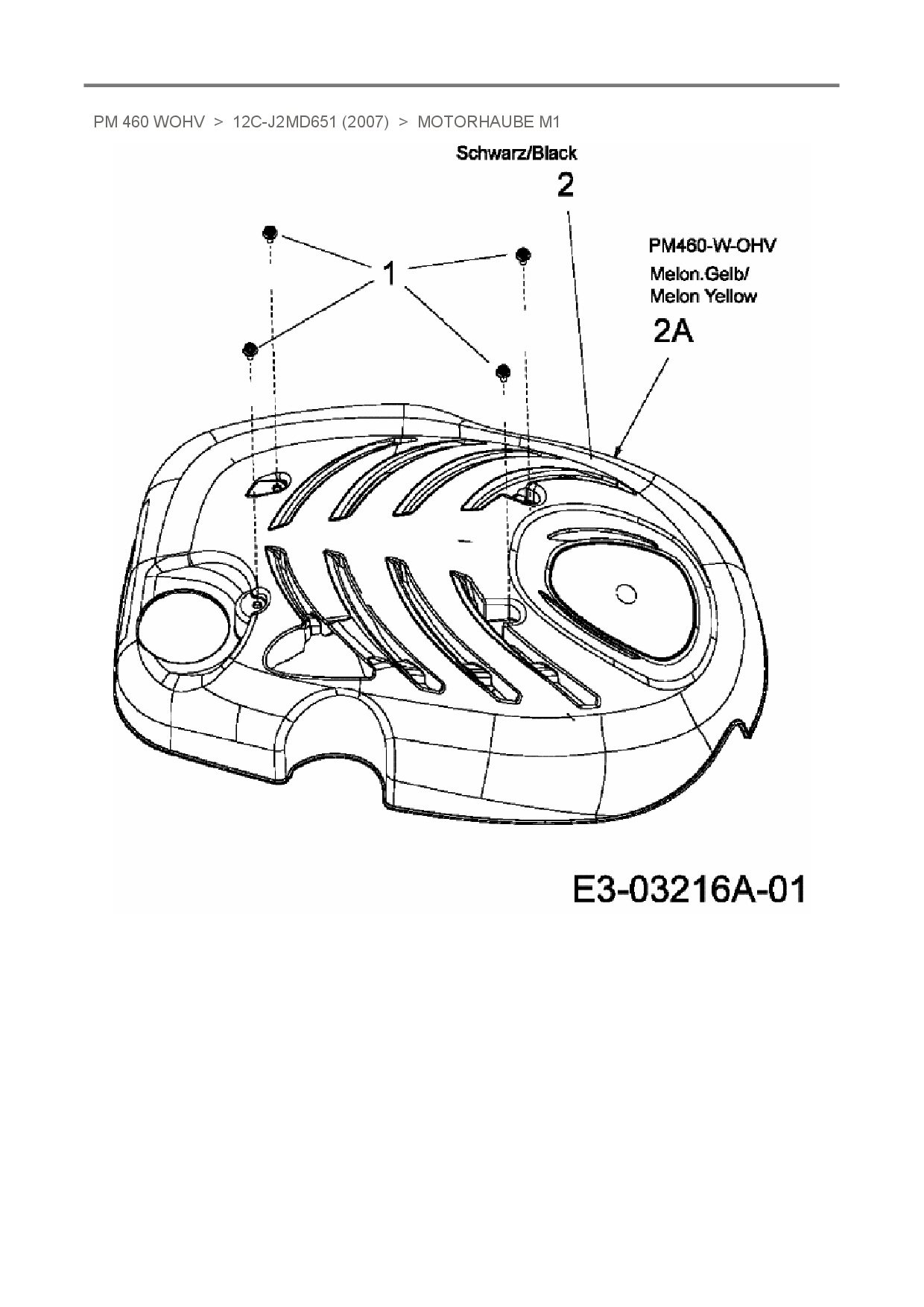 Ersatzteile für Motormäher mit Antrieb Terradena PM 460 WOHV aus der Zeichnung Motorhaube M1: