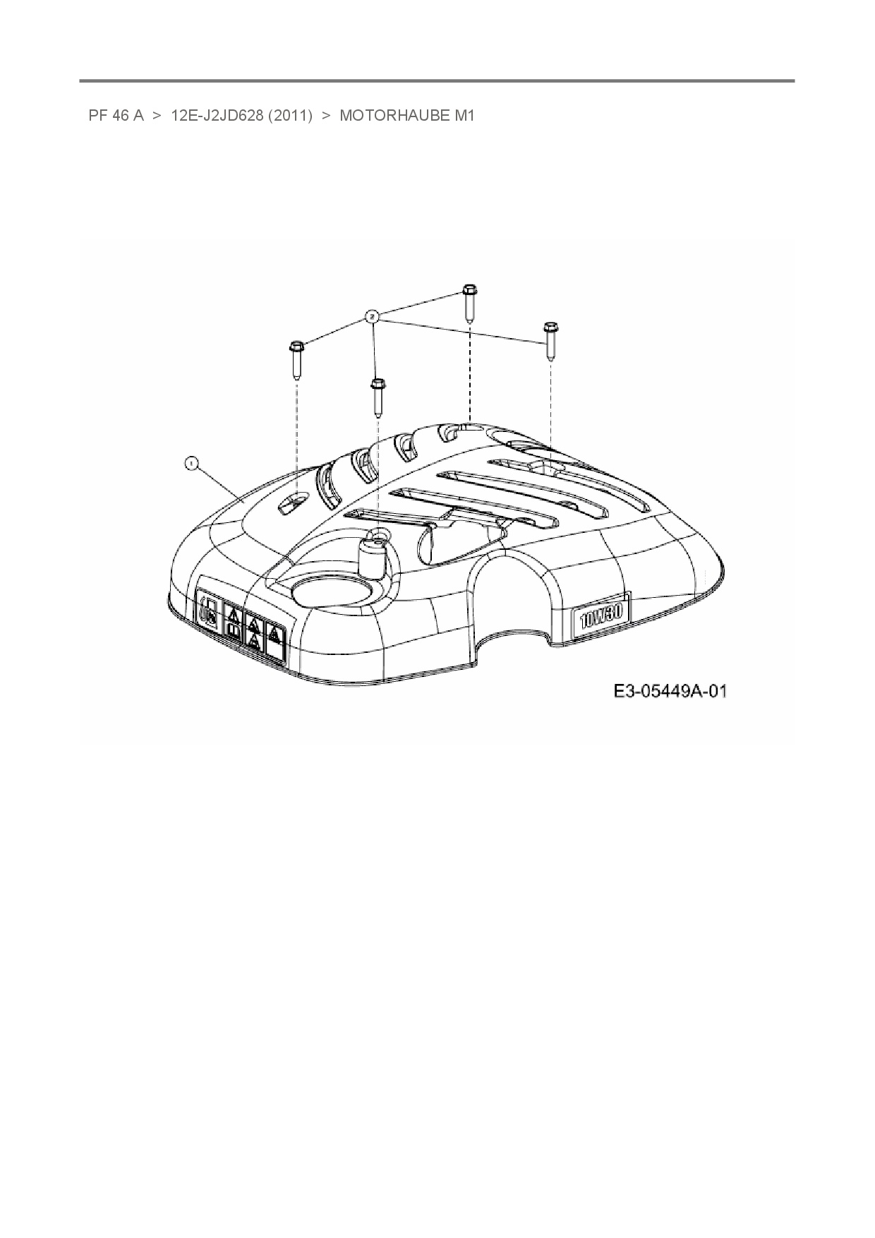 Ersatzteile für Motormäher mit Antrieb Preisfuxx PF 46 A aus der Zeichnung Motorhaube M1: