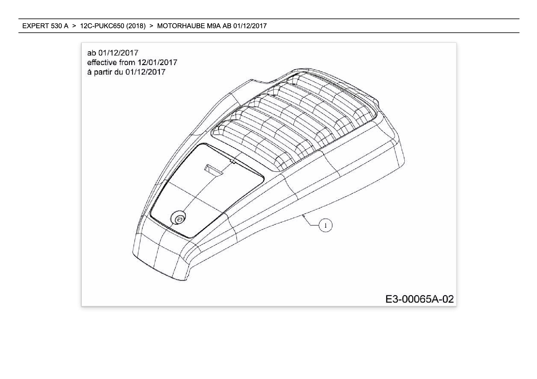 Ersatzteile für Motormäher mit Antrieb Wolf-Garten Expert EXPERT 530 A aus der Zeichnung Motorhaube M9A ab 01/12/2017: