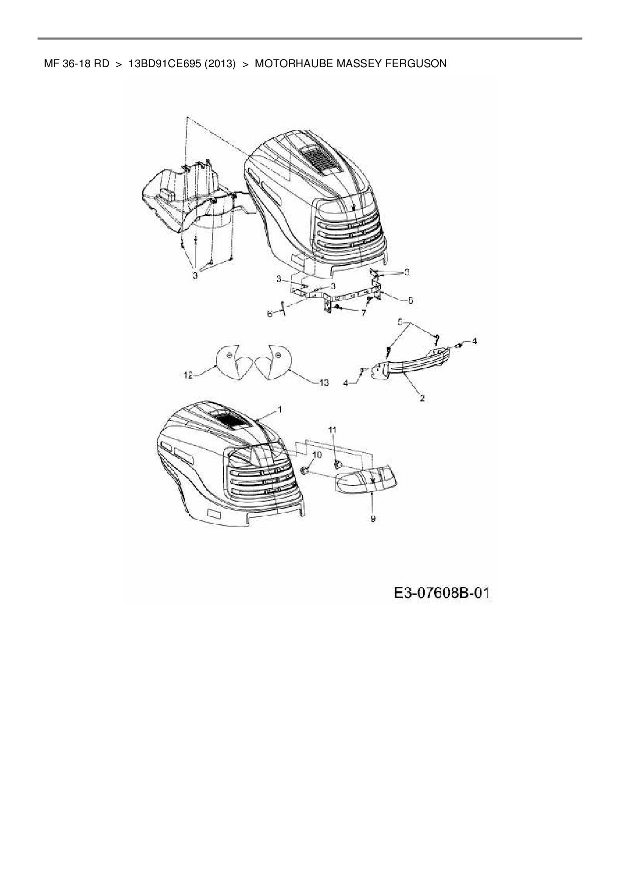 Ersatzteile für Rasentraktor Massey Ferguson MF 36-18 RD aus der Zeichnung Motorhaube Massey Ferguson: