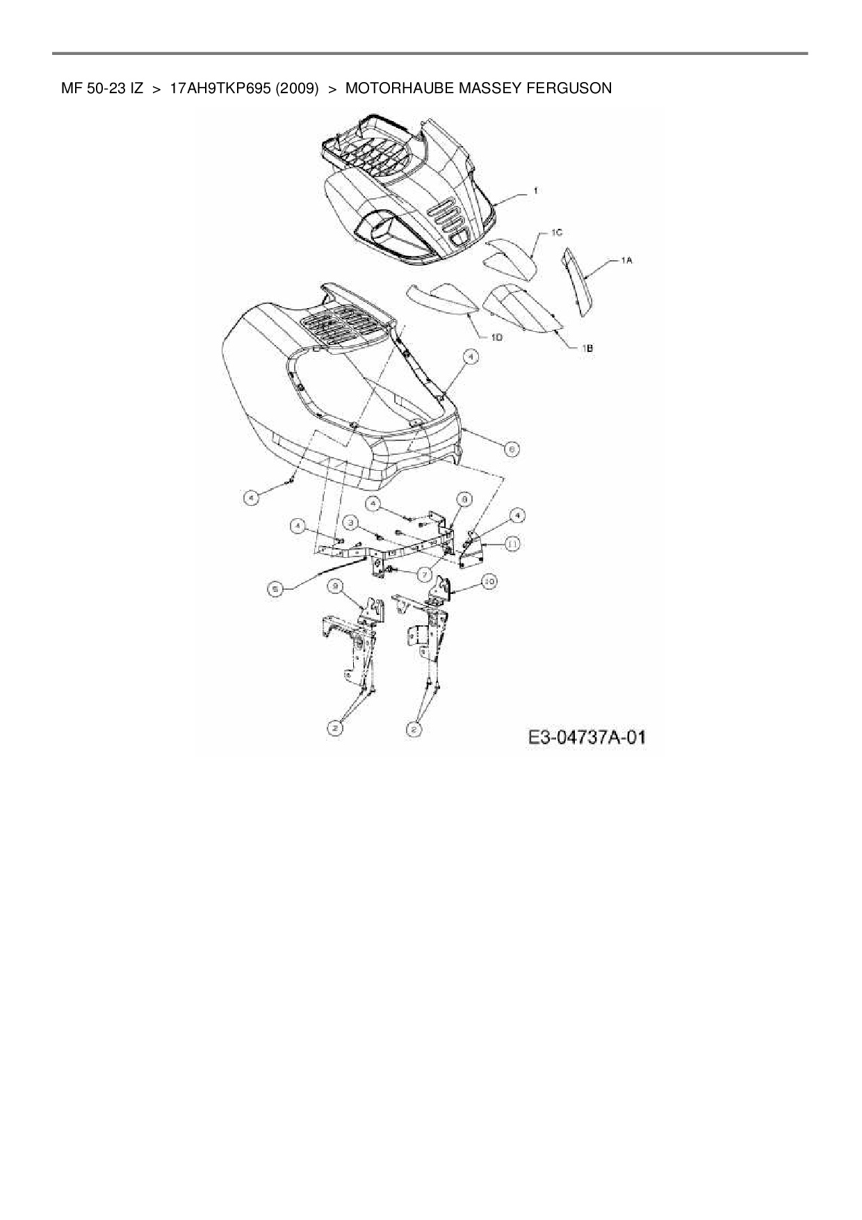 Ersatzteile für Zero Turn Massey Ferguson MF 50-23 IZ aus der Zeichnung Motorhaube Massey Ferguson: