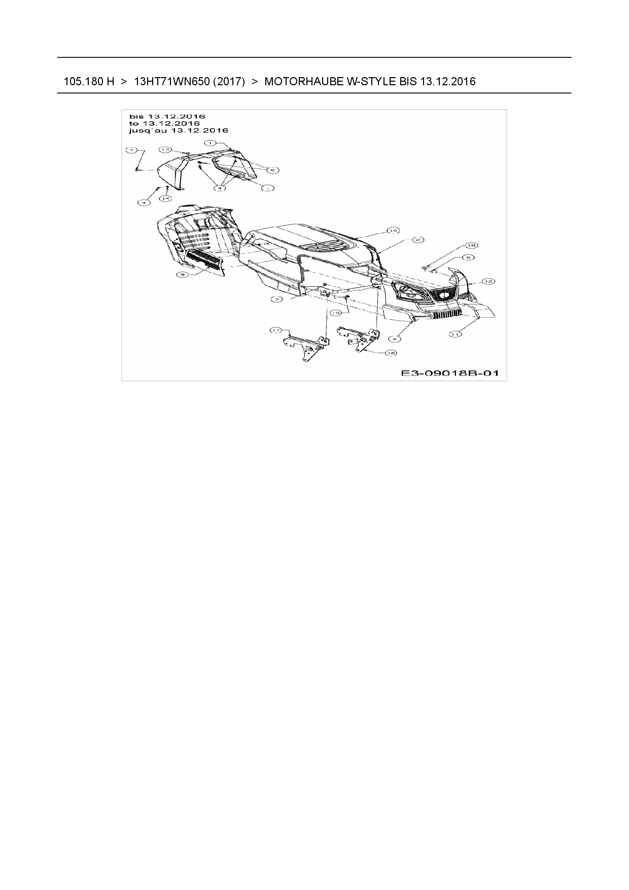 Ersatzteile für Rasentraktor Wolf-Garten 105.180 H aus der Zeichnung Motorhaube W-Style bis 13.12.2016: