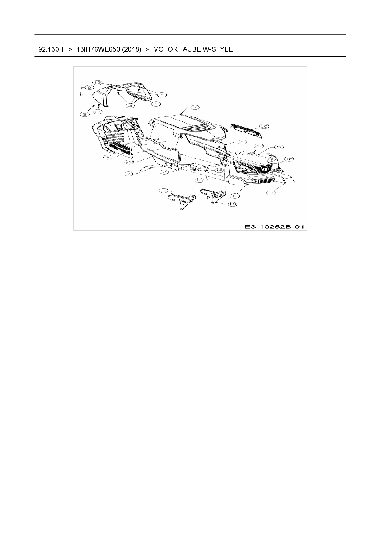 Ersatzteile für Rasentraktor Wolf-Garten 92.130 T aus der Zeichnung Motorhaube W-Style: