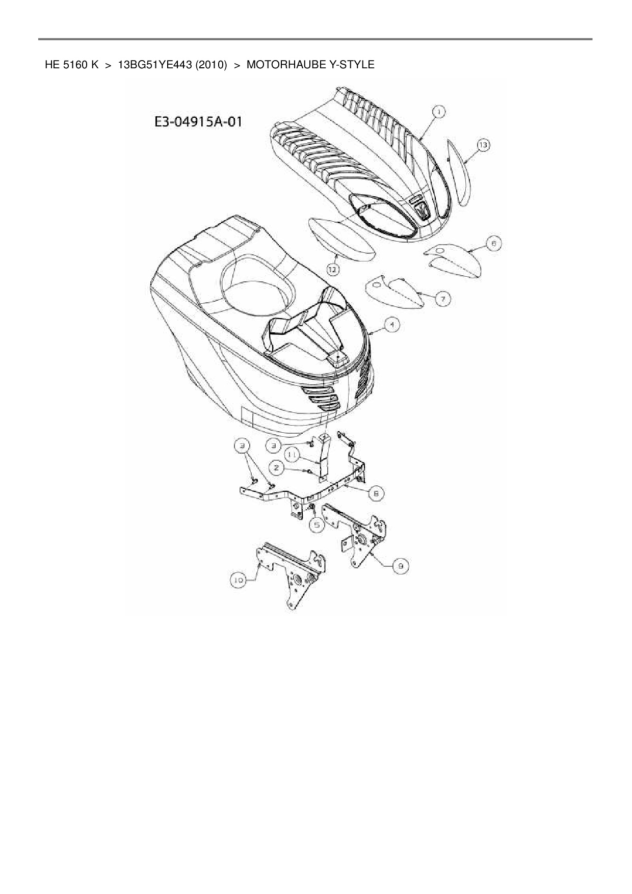Download Ersatzteil-Zeichnung Yard-Man HE 5160 K Zeichnung Motorhaube Y-Style (PDF-Format)
