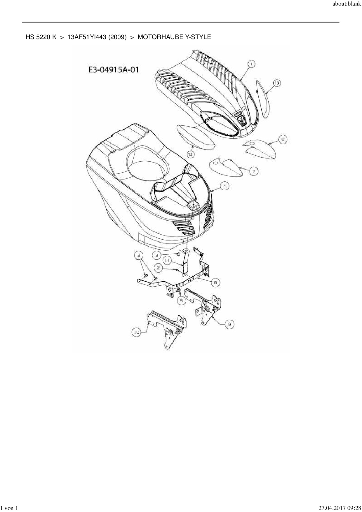 Ersatzteile für Rasentraktor Yard-Man HS 5220 K aus der Zeichnung Motorhaube Y-Style: