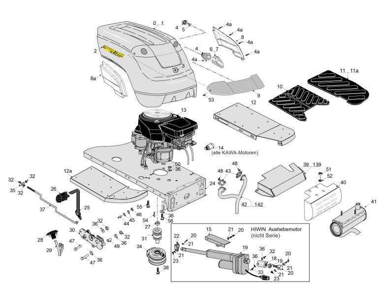 Zeichnung von ECHO-Motorgeräte Rasentraktoren A-Serie A-200er Serie Bj. 2009 Motorhaube: