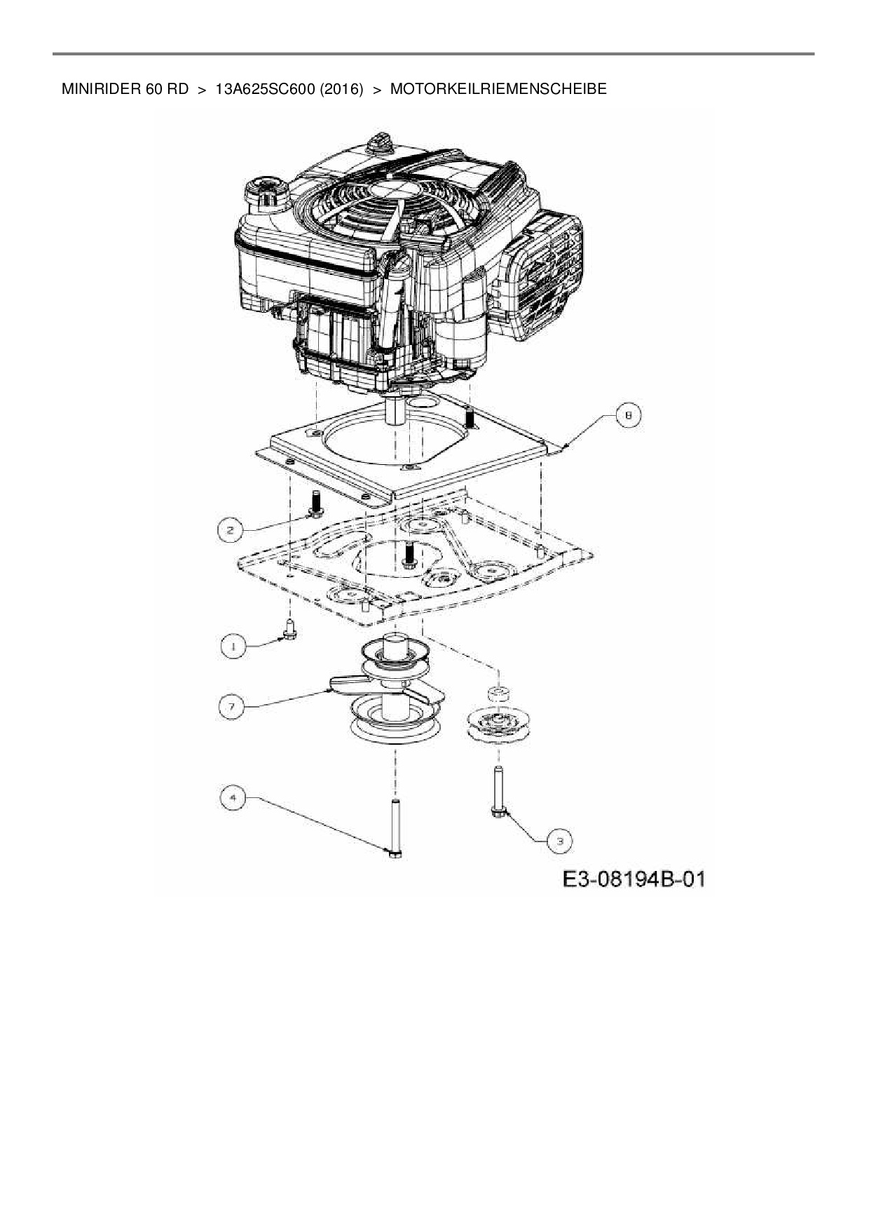 Ersatzteile für Rasentraktor MTD Minirider 60 RD aus der Zeichnung Motorkeilriemenscheibe: