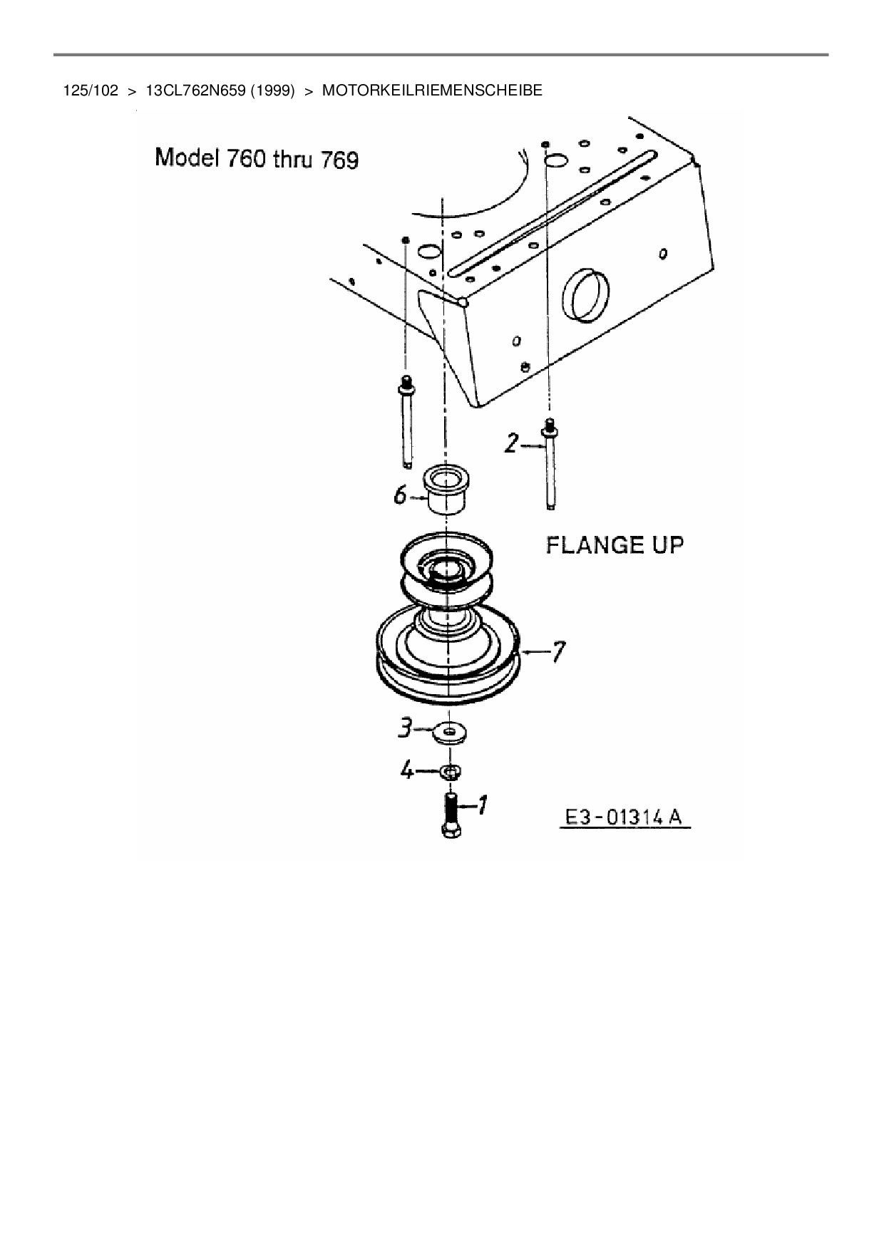 Ersatzteile für Rasentraktor Mastercut 125/102 aus der Zeichnung Motorkeilriemenscheibe: