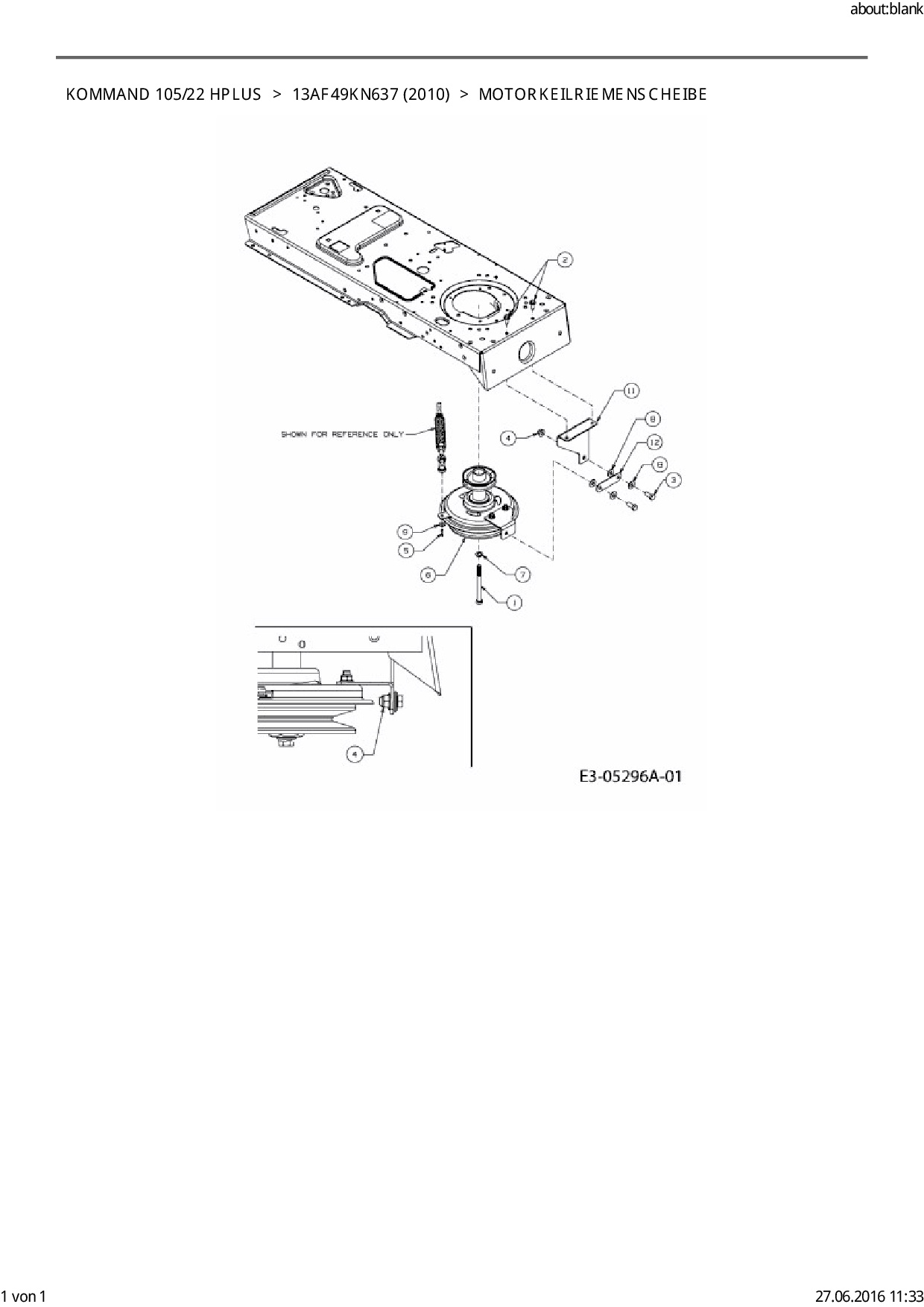 Ersatzteile für Rasentraktor EFCO Kommand 105/22 HPlus aus der Zeichnung Motorkeilriemenscheibe: