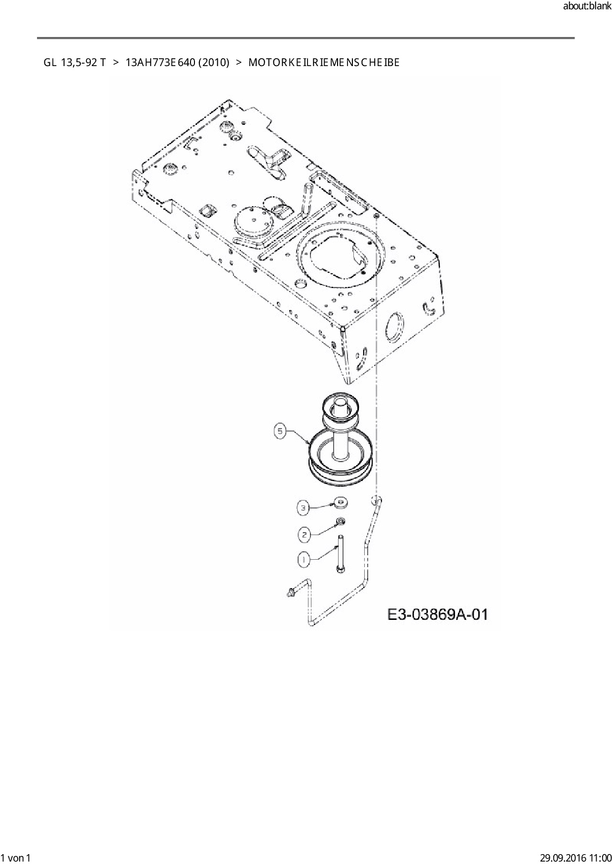 Ersatzteile für Rasentraktor Gartenland GL 13,5-92 T aus der Zeichnung Motorkeilriemenscheibe: