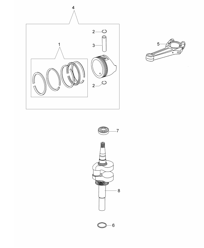 Hier finden Sie alle Ersatzteile für Oleo-Mac Rasenmäher G 53 TK (K650) aus der Zeichnung für Motorwelle und Kolben: