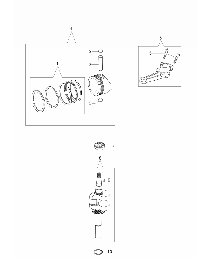 Hier finden Sie alle Ersatzteile für Oleo-Mac Rasenmäher G 53 TK COMFORT PLUS ALLROAD (K800) aus der Zeichnung für Motorwelle und Kolben: