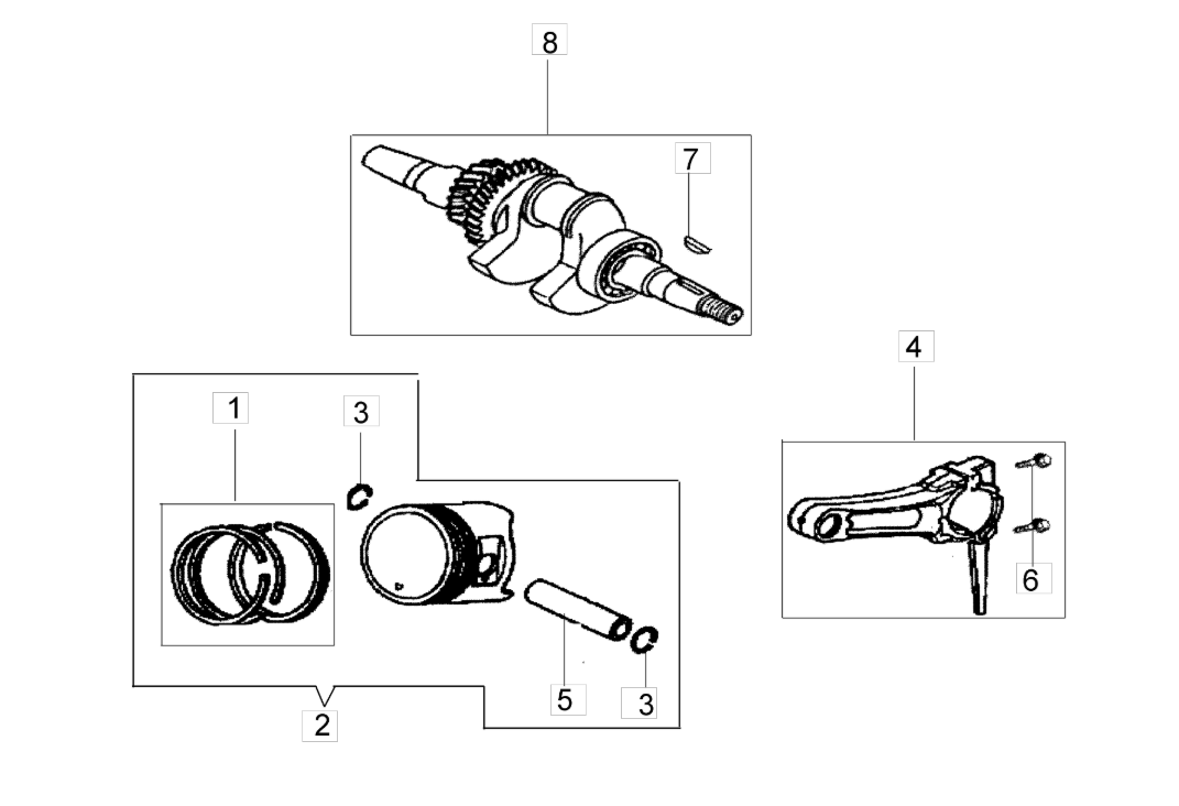 Hier finden Sie alle Ersatzteile für Oleo-Mac Motorhacken MH 175 RK (K800 HT) aus der Zeichnung für Motorwelle und Kolben: