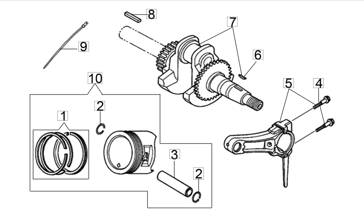 Motorwelle und Kolben