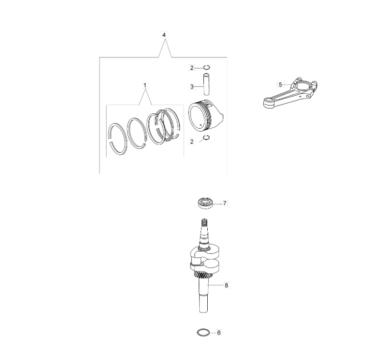 Motorwelle und Kolben