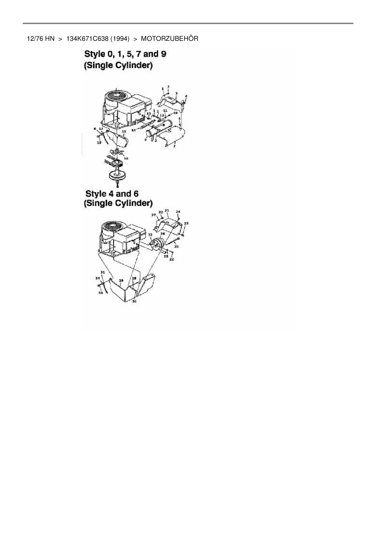Ersatzteile für Rasentraktor MTD 12/76 HN aus der Zeichnung Motorzubehör 1: