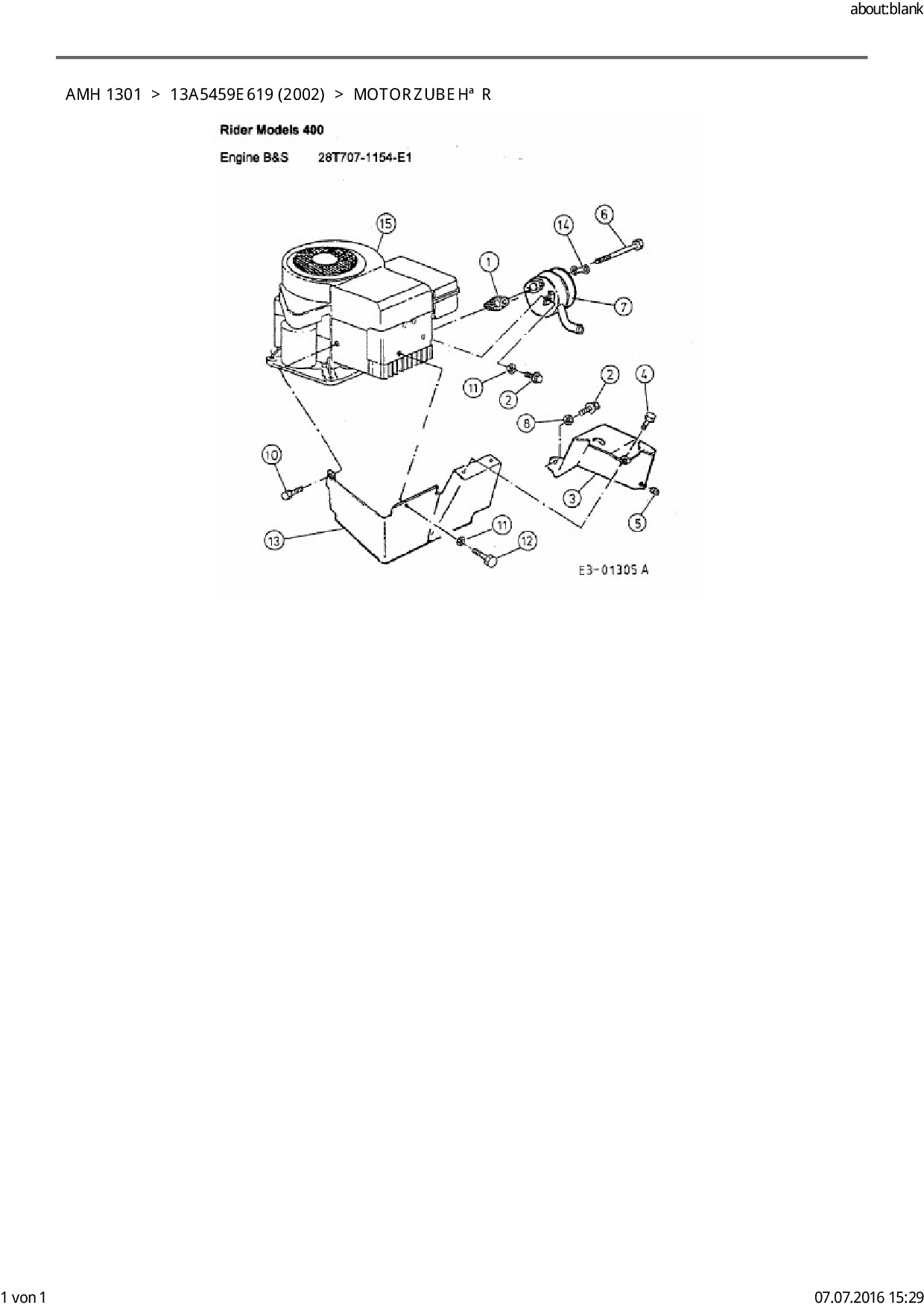 Ersatzteile für Rasentraktor FLEURELLE AMH 1301 aus der Zeichnung Motorzubehör 1: