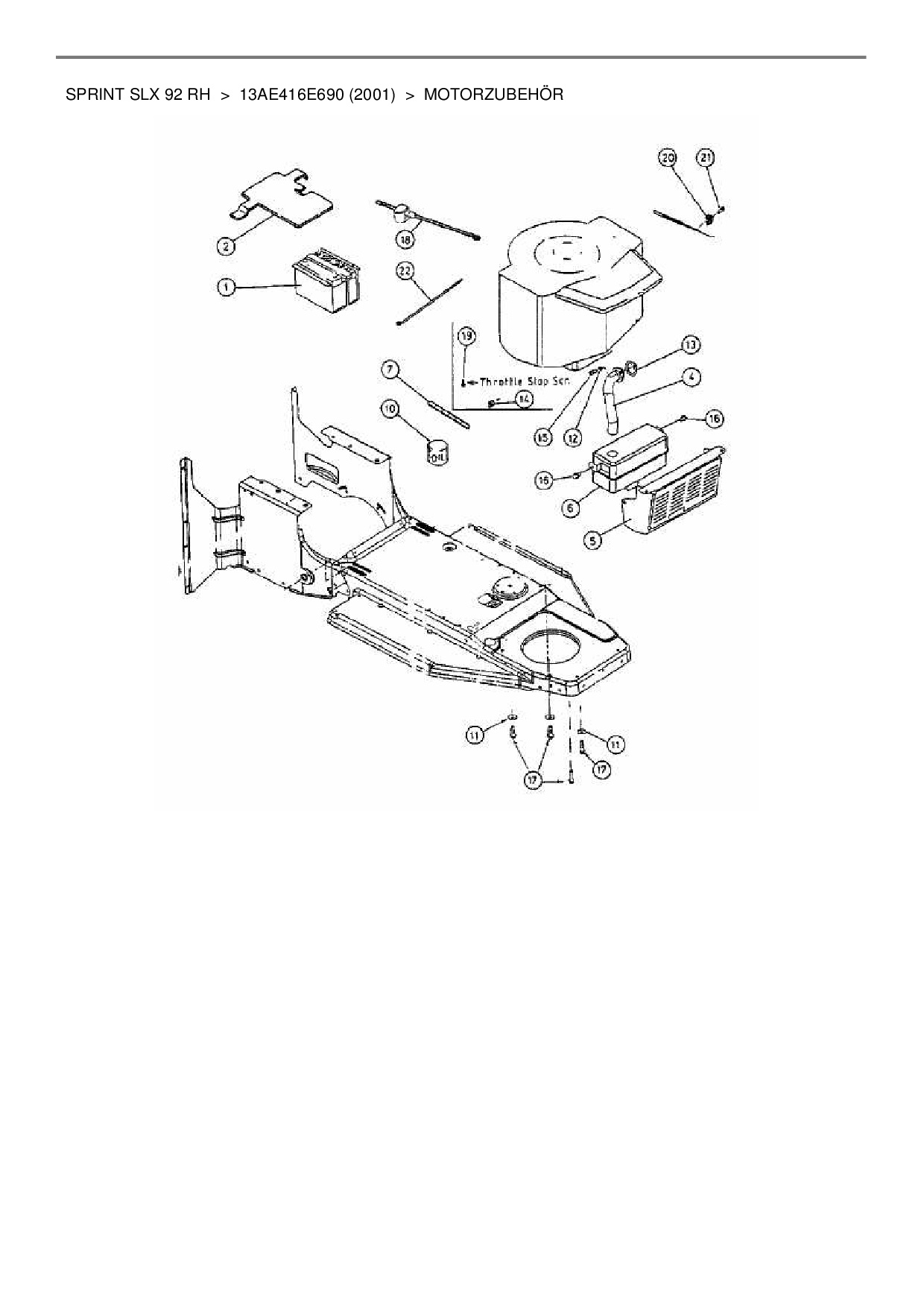 Zeichnung für Gutbrod Rasentraktor Sprint SLX 92 RH mit der Geräte-Artikelnr. 13AE416E690 ab Baujahr 2001: