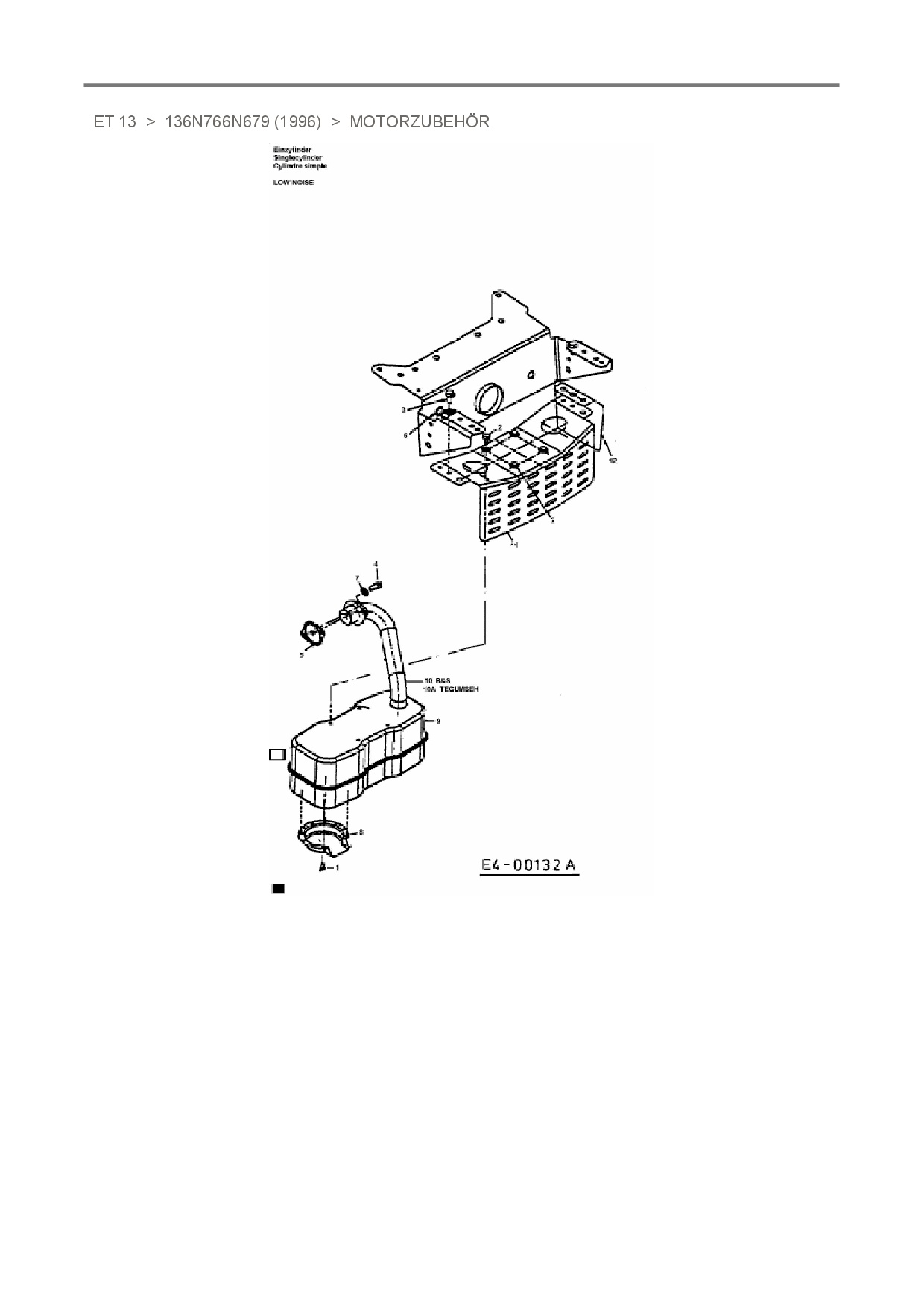Ersatzteile für Rasentraktor White ET 13 aus der Zeichnung Motorzubehör Einzylinder: