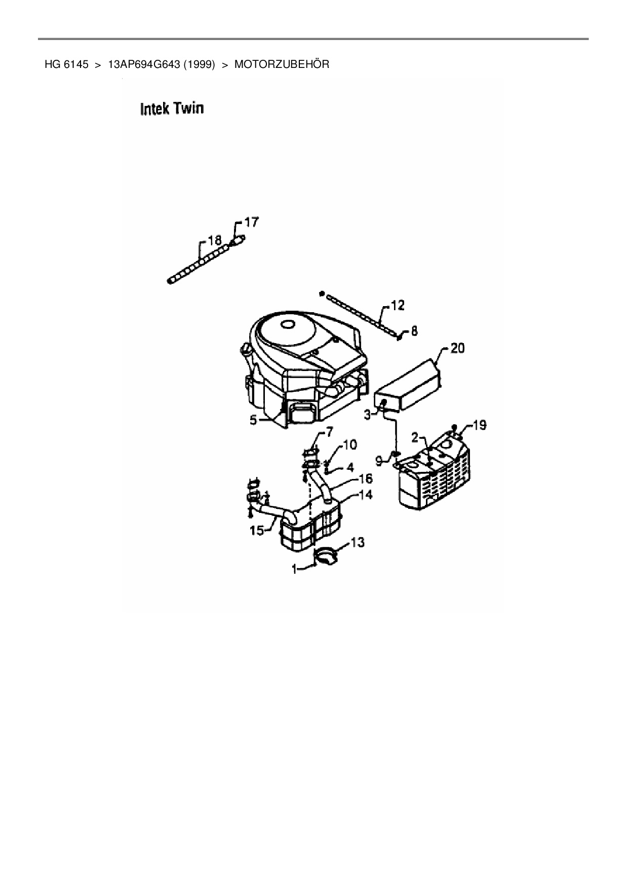 Ersatzteile für Rasentraktor Yard-Man HG 6145 aus der Zeichnung Motorzubehör Intek Twin: