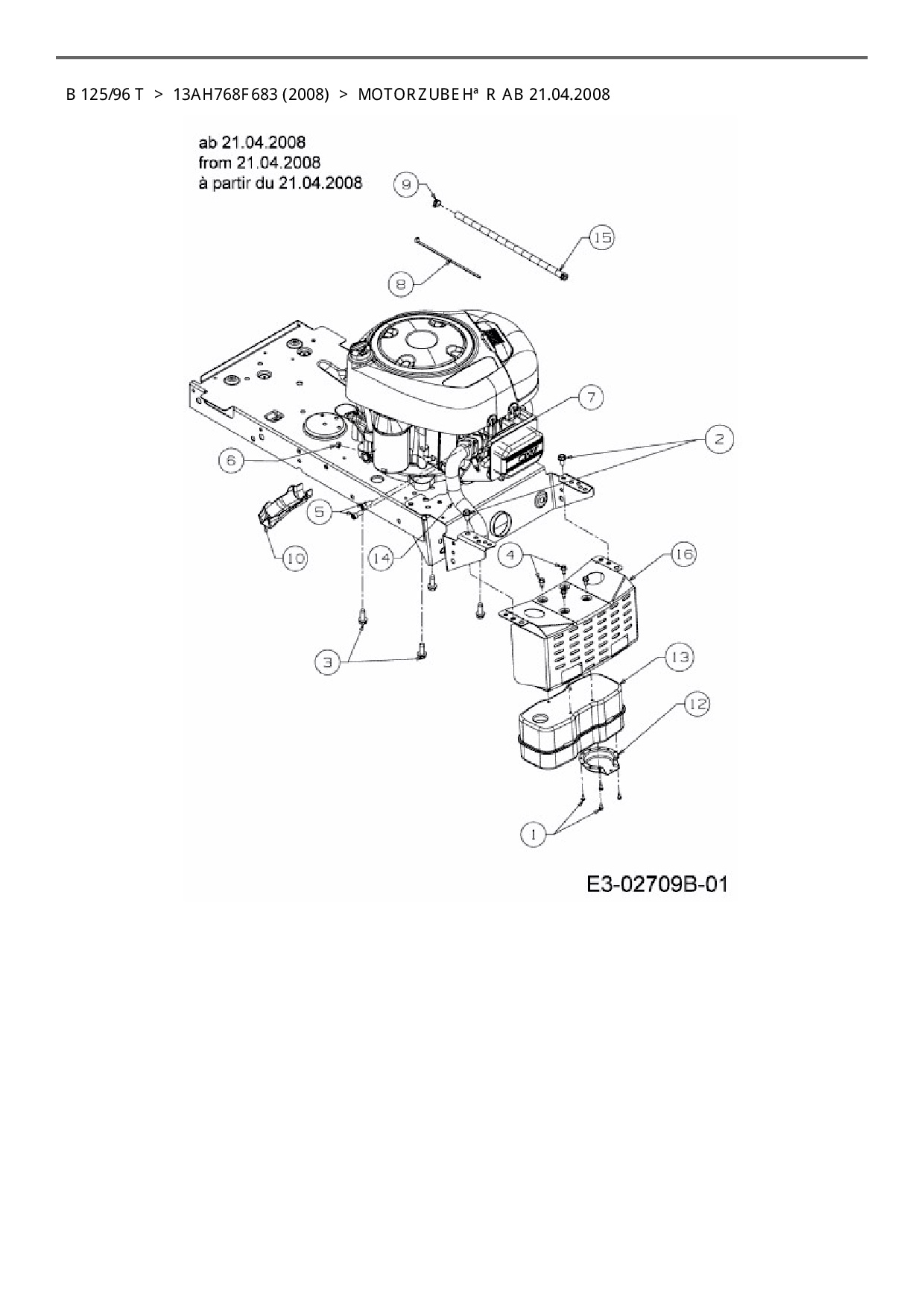 Ersatzteile für Rasentraktor Black-Line B 125/96 T aus der Zeichnung Motorzubehör ab 21.04.2008: