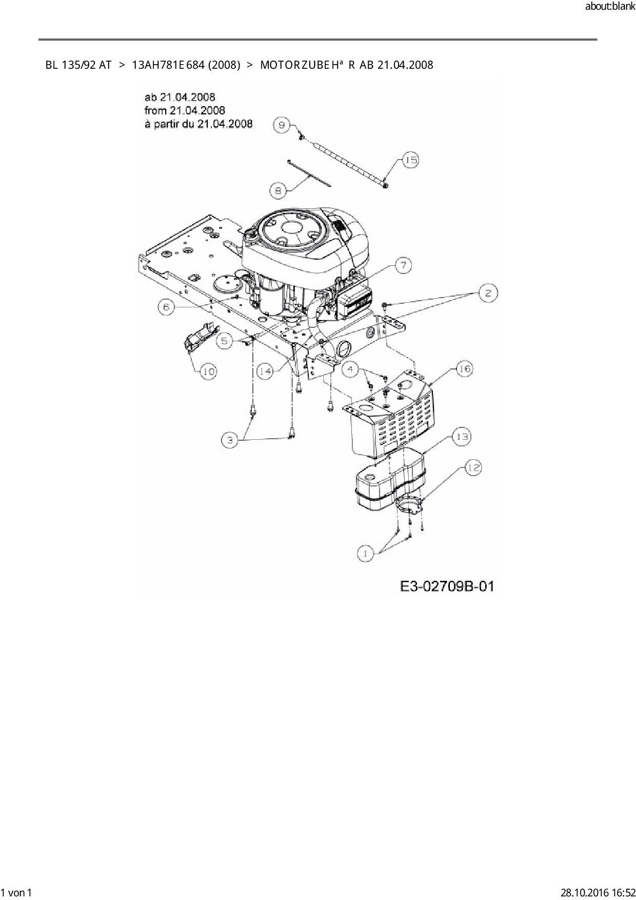 Ersatzteile für Rasentraktor Bolens BL 135/92 AT aus der Zeichnung Motorzubehör ab 21.04.2008: