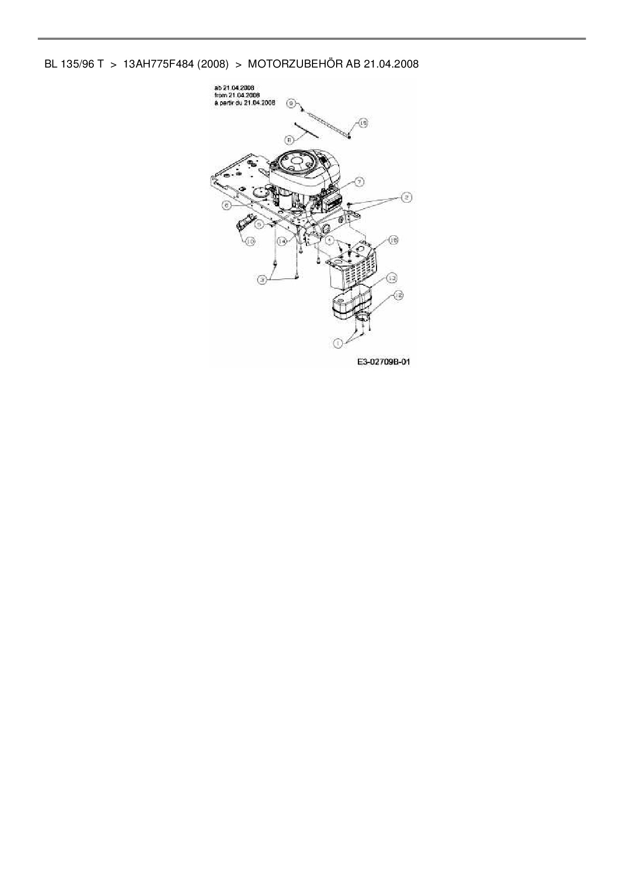 Ersatzteile für Rasentraktor Bolens BL 135/96 T aus der Zeichnung Motorzubehör ab 21.04.2008: