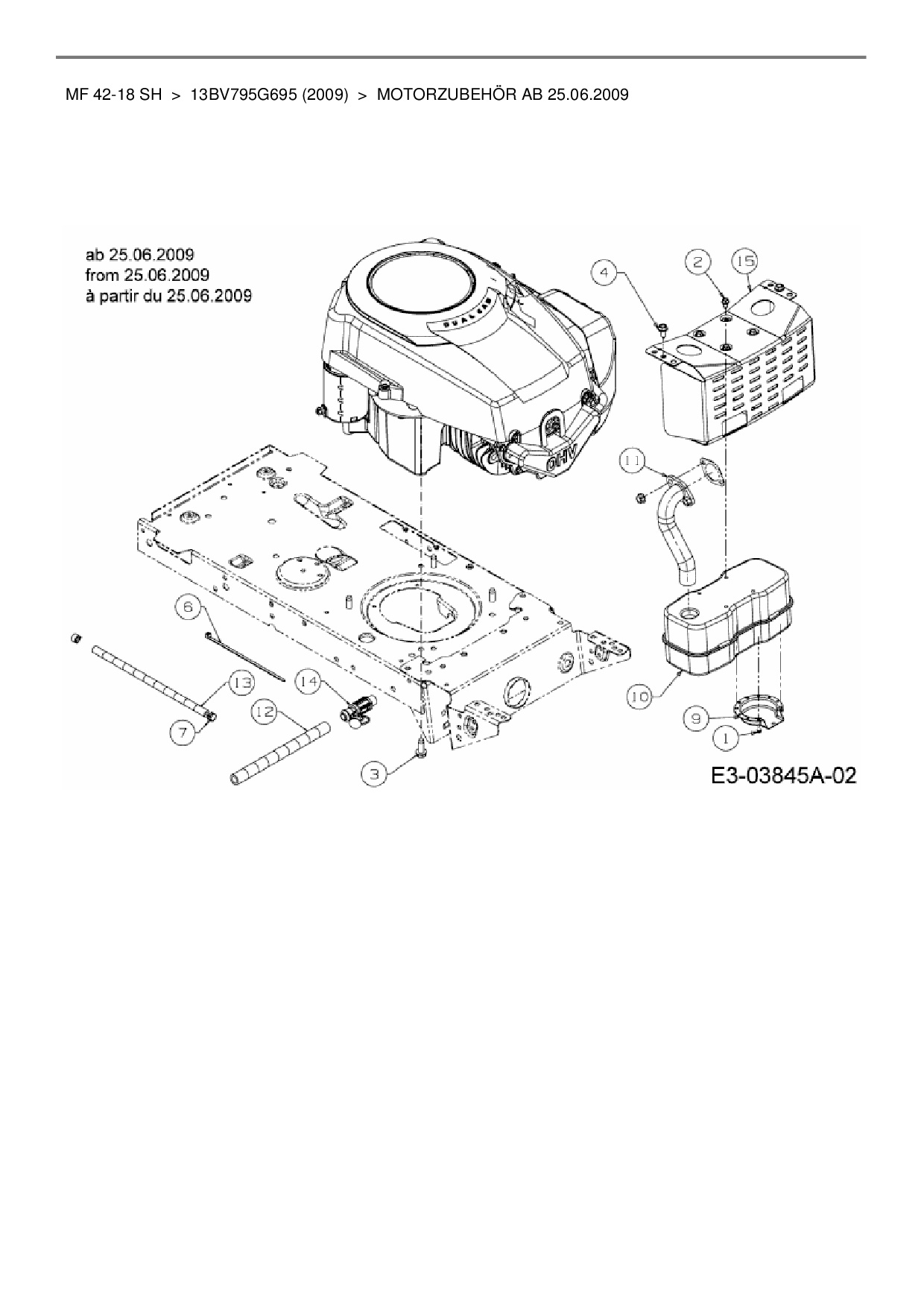 Ersatzteile für Rasentraktor Massey Ferguson MF 42-18 SH aus der Zeichnung Motorzubehör ab 25.06.2009: