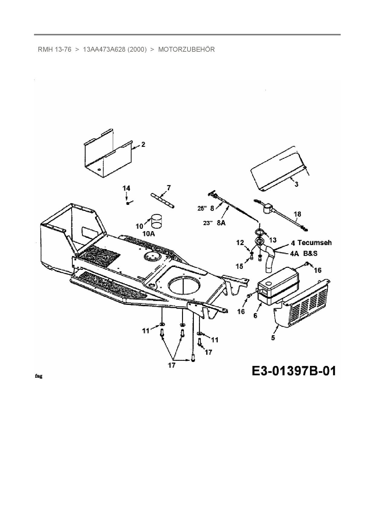 Ersatzteile für Rasentraktor Raiffeisen RMH 13-76 aus der Zeichnung Motorzubehör(1):