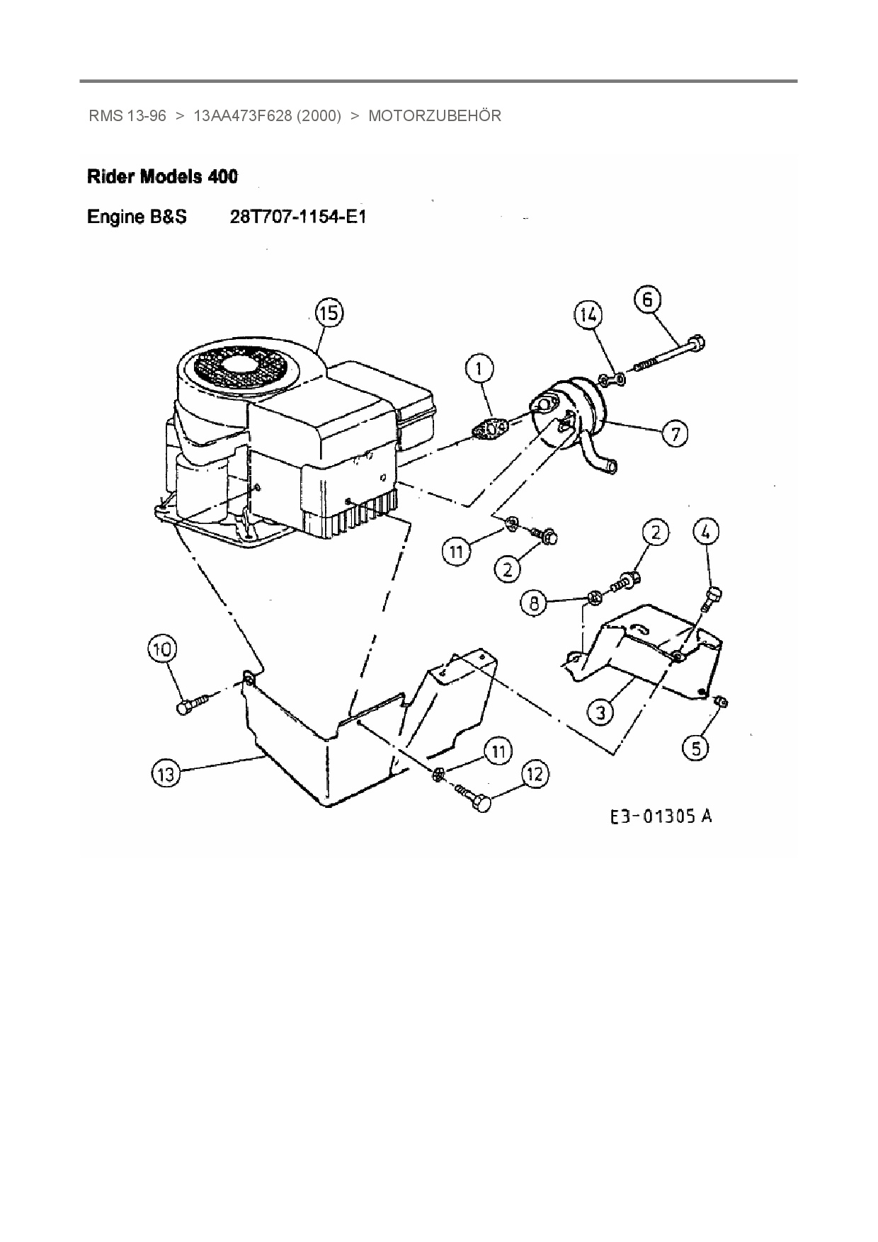 Ersatzteile für Rasentraktor Raiffeisen RMS 13-96 aus der Zeichnung Motorzubehör(2):