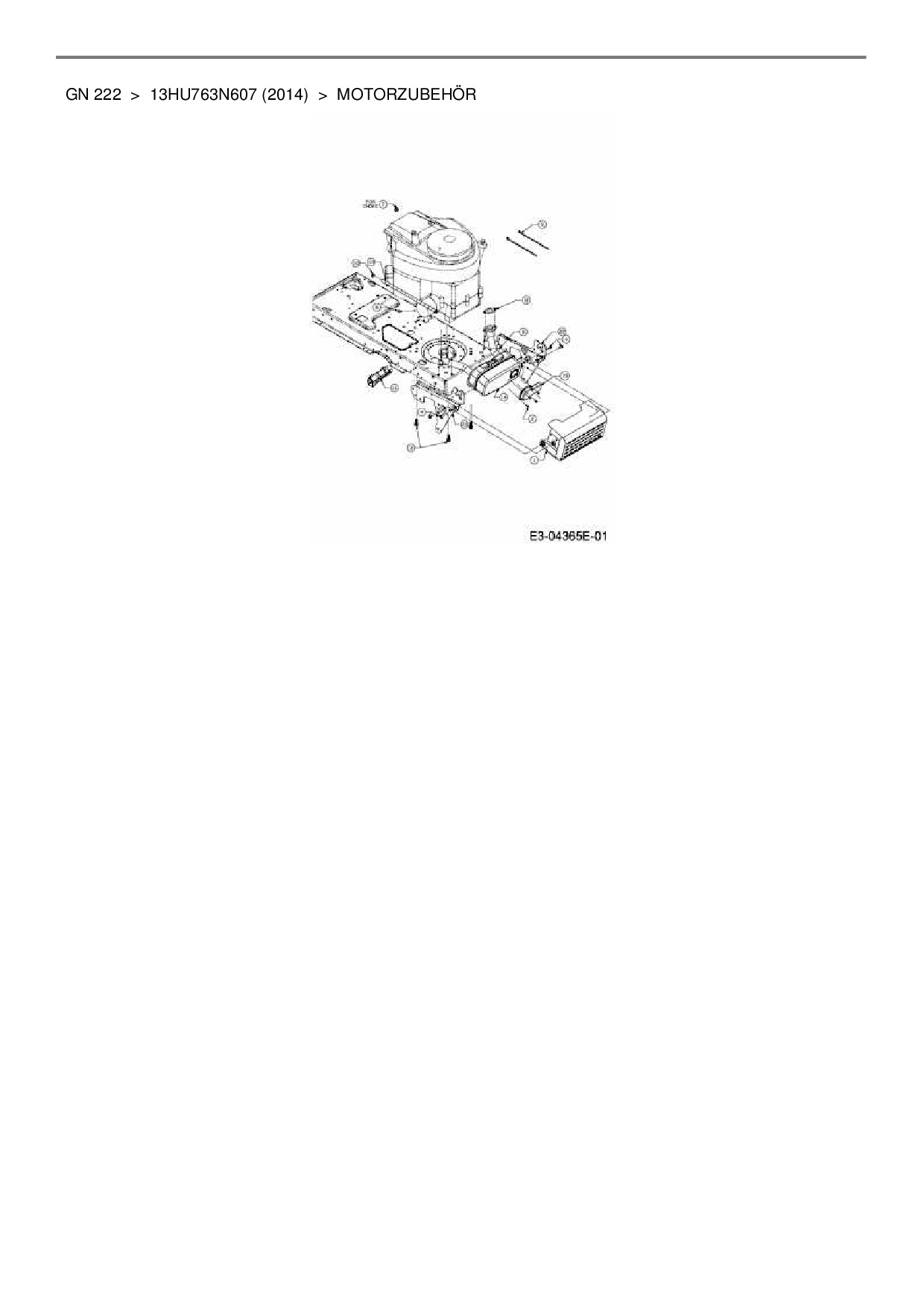 Zeichnung für Blisar Rasentraktor GN 222 mit der Geräte-Artikelnr. 13HU763N607 ab Baujahr 2014: