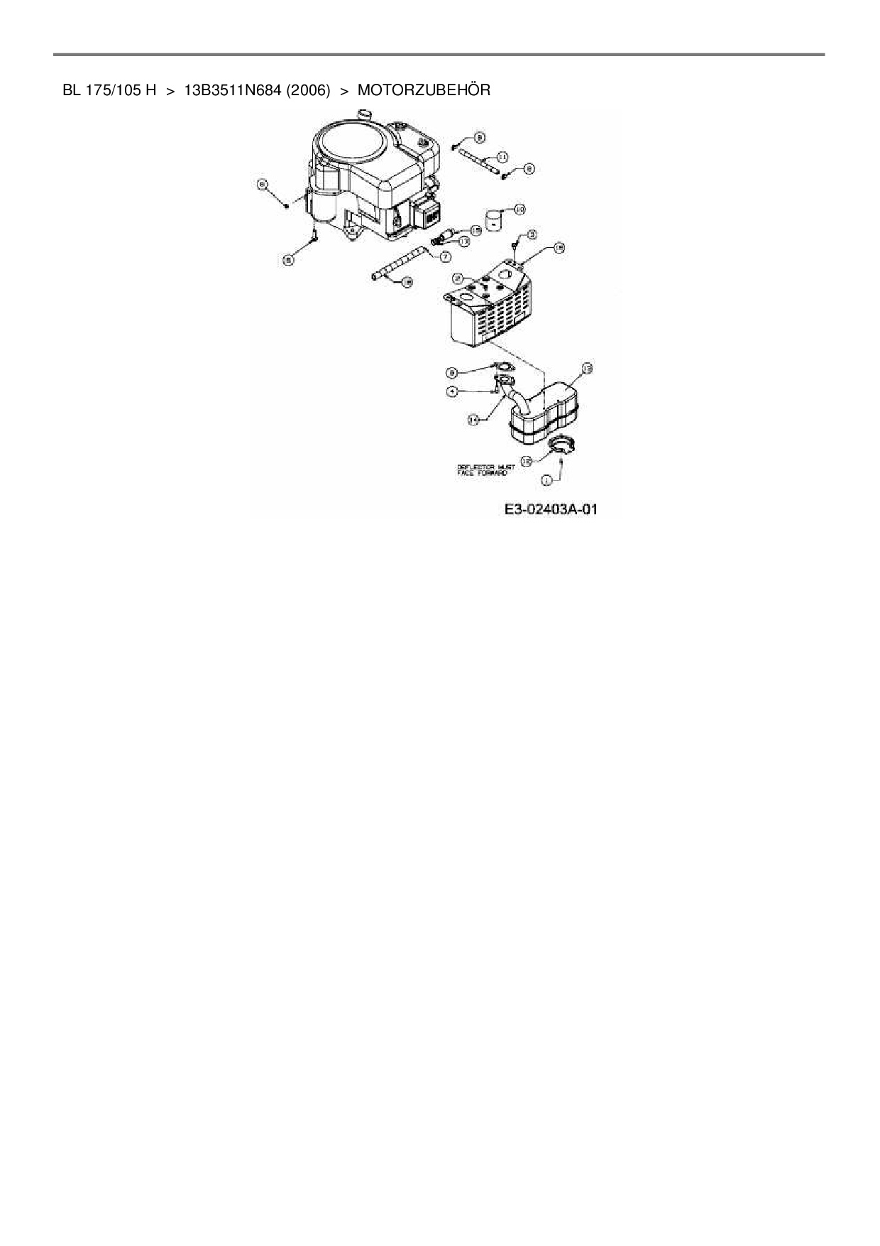 Ersatzteile für Rasentraktor Bolens BL 175/105 H aus der Zeichnung Motorzubehör: