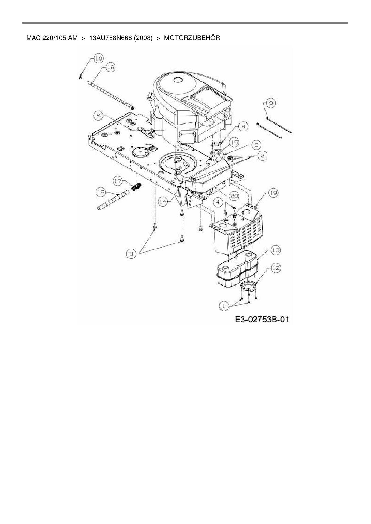 Ersatzteile für Rasentraktor Mac Allister Mac 220/105 AM aus der Zeichnung Motorzubehör: