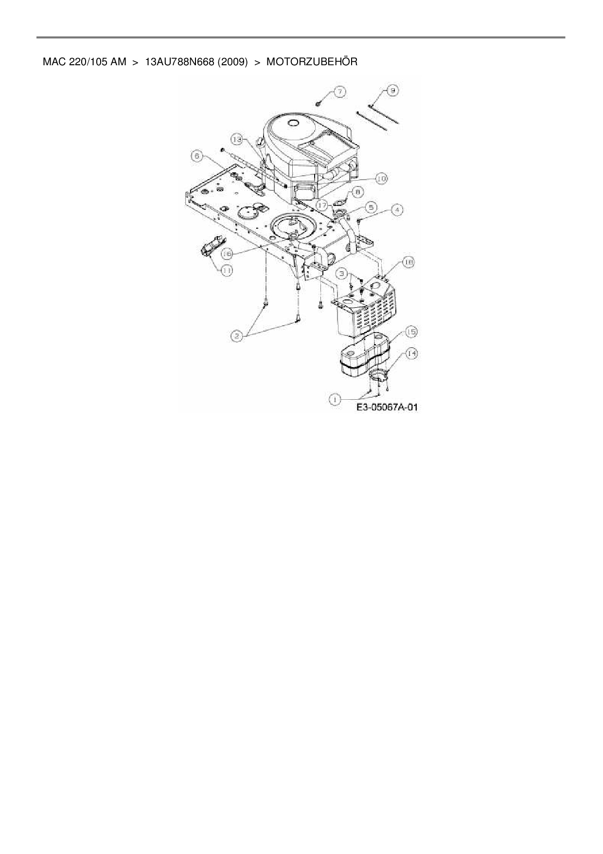 Zeichnung für Mac Allister Rasentraktor Mac 220/105 AM mit der Geräte-Artikelnr. 13AU788N668 ab Baujahr 2009: